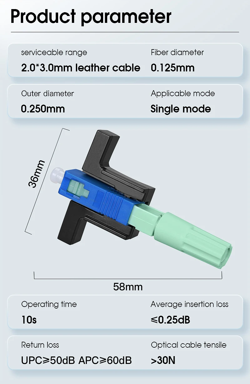 Conector de fibra óptica SC/APC SC/UPC, herramientas FTTH de 58mm, conector rápido de fibra óptica, conector rápido de fibra óptica monomodo
