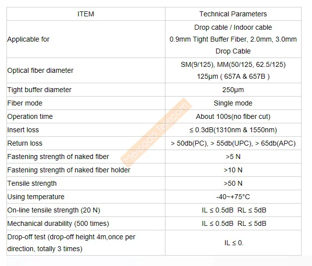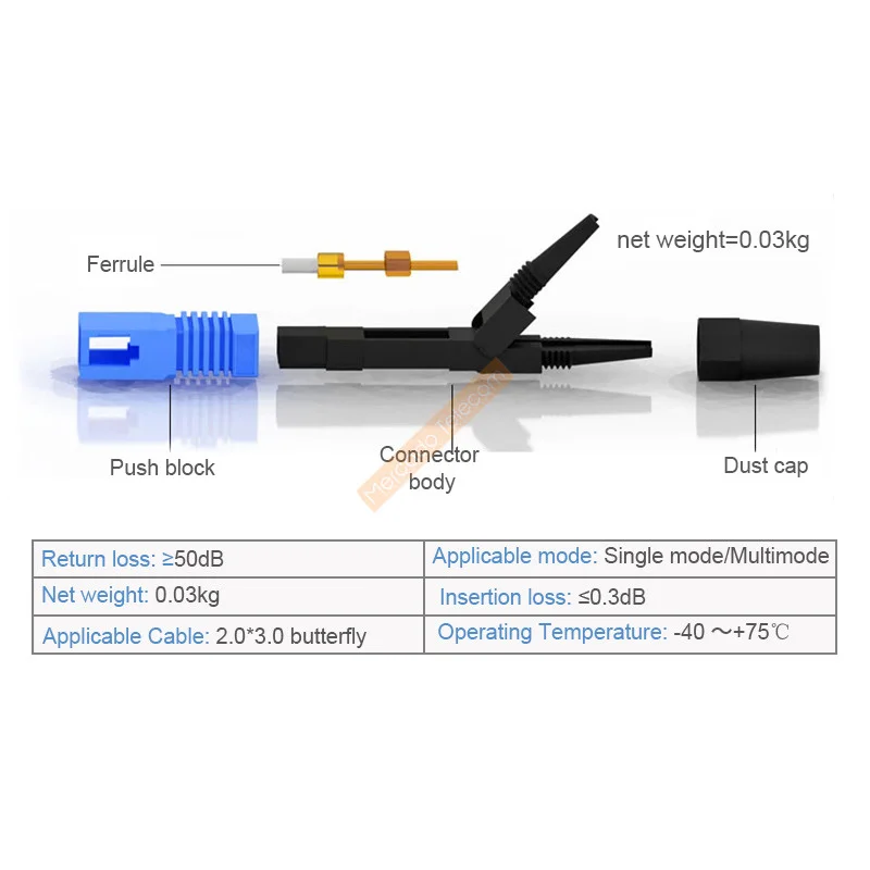 Conector SC UPC de 60mm Fibra óptica FTTH Monomodo FTTH SC/UPC Conector rápido de fibra Montaje de campo rápido