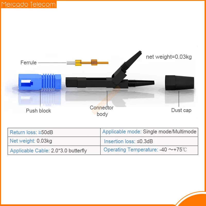 Conector SC UPC de 60mm Fibra óptica FTTH Monomodo FTTH SC/UPC Conector rápido de fibra Montaje de campo rápido