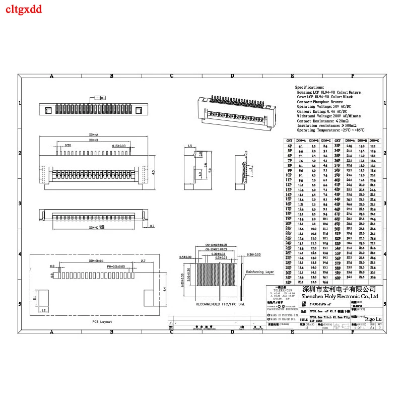 Comprar Conector FPC FFC de 0,5mm, Cable plano, PCB, SMT ZIF, 40P, 45P, 50P, 54P, 60P, Pin H = 1,5, 2 uds.