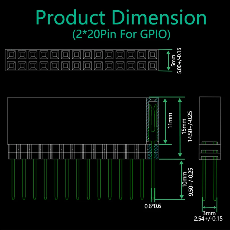 Conector GPIO de 40 Pines, 2x20 pines (40 pines), cabezal de apilamiento hembra extra alto para Raspberry Pi A + Pi Model B + Pi 2 3 4B con base acrílica