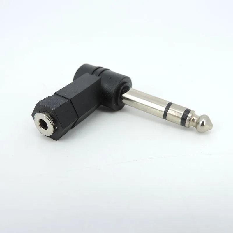 Conector hembra de 3,5mm a conector macho de 6,35mm, conector convertidor de cable tipo L en ángulo recto, adaptador de sonido para auriculares