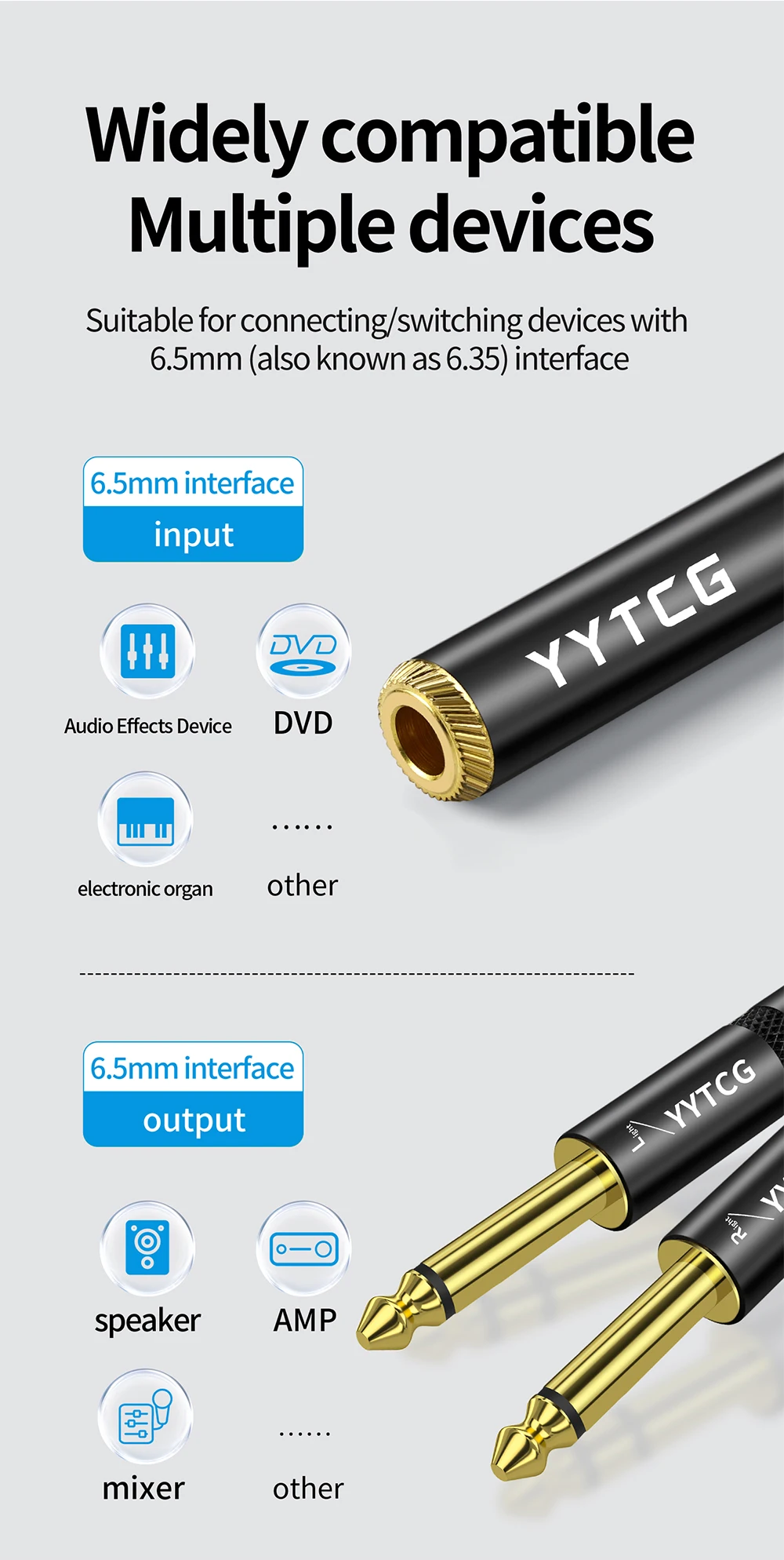 Adecuado para conectar/cambiar dispositivos con interfaz de 6,5 mm (también conocida como 6,35)