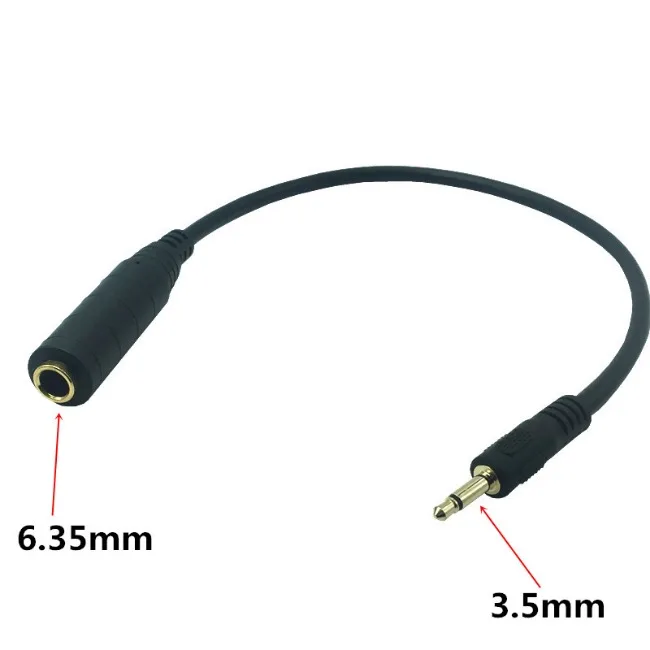 - El cable de audio mono macho de 3,5mm a hembra de 6,35mm se utiliza para transferir audio entre dispositivos de 3,5mm y dispositivos de 6,35mm, como auriculares, altavoces, amplificadores, guitarras, pianos, etc. Consola mezcladora, cine en casa, receptores AV, micrófono a tarjeta de sonido externa, etc.