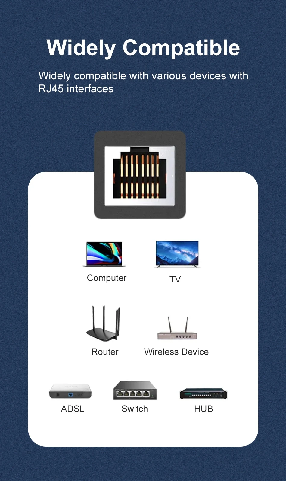 2.Compatibilidad: Cable Ethernet Cat7/Cat6/Cat5e.
