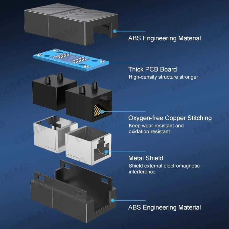 1.Conectores: RJ45 8P8C, revestimiento de cobre puro.