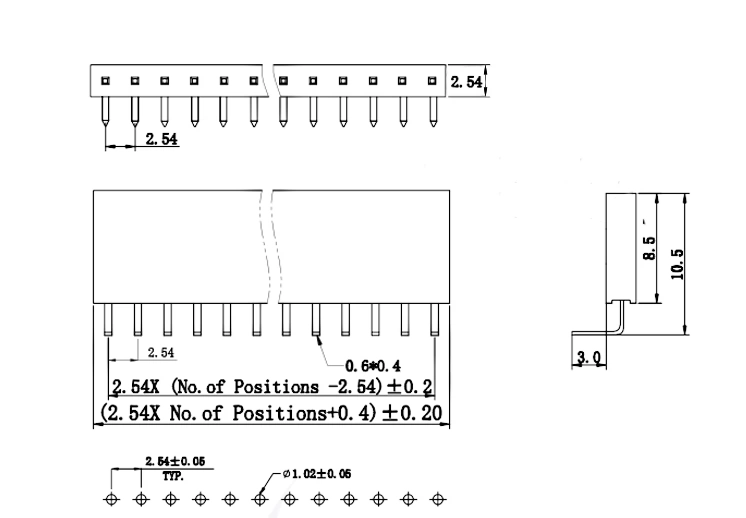 1. Pitch: 2.54mm