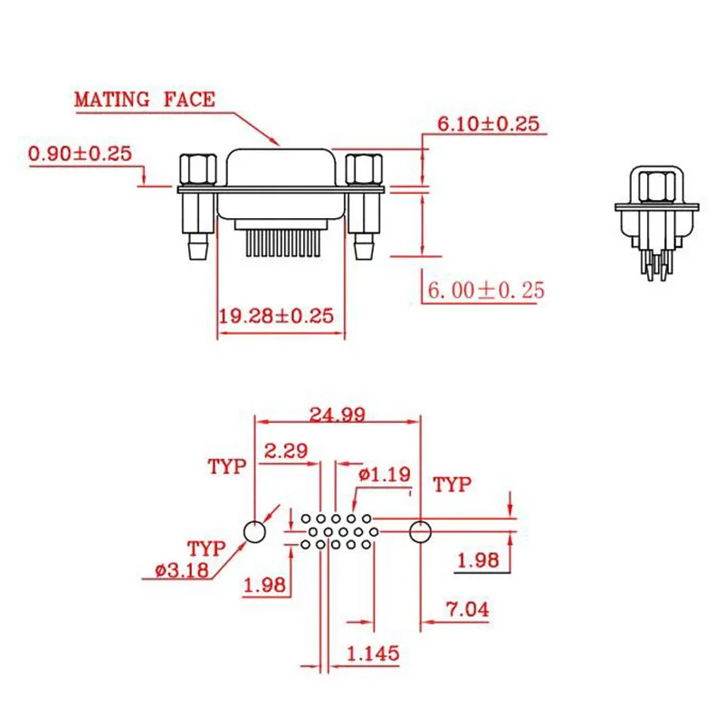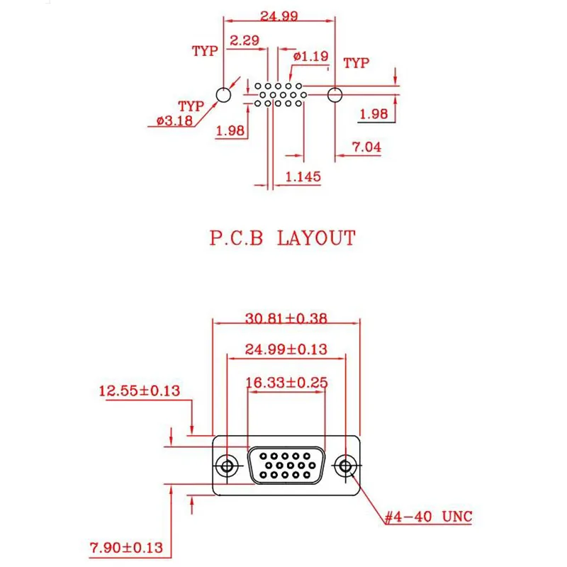 Arpón DB15/VGA a con pie fijo con tornillos remachadores/arpón DP15 cabeza hembra tres filas 15 pines.