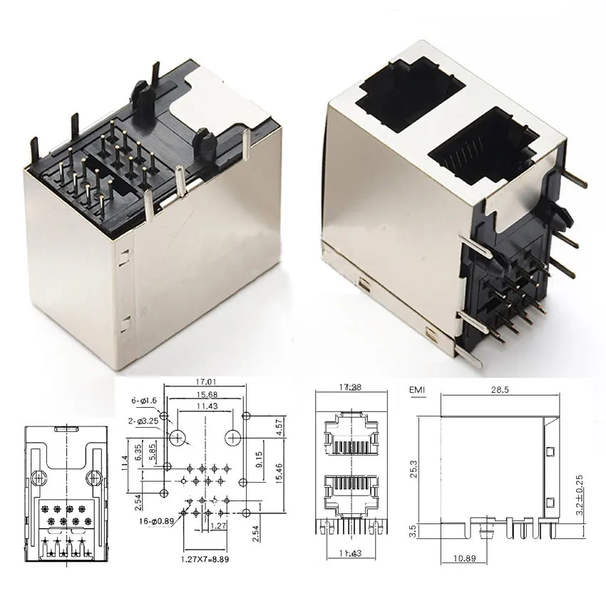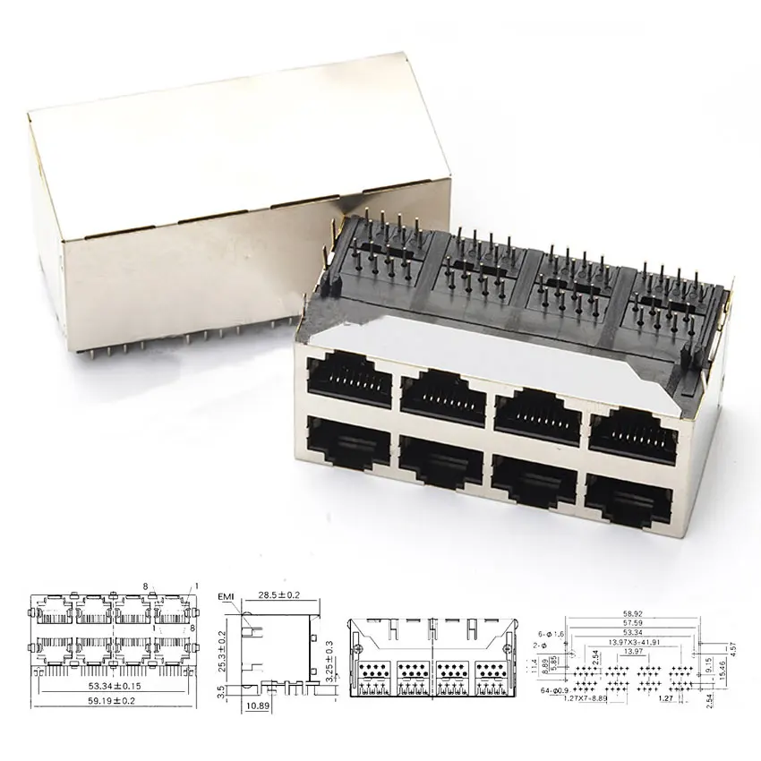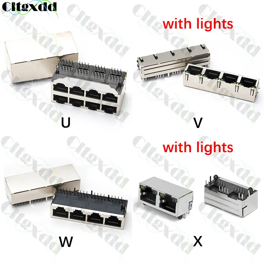 Comprar Conector hembra Ethernet de red, 10 piezas, RJ45, 8P8C, 10P8C, 2P, 4P, 8P, 8 pines con luz SMD/SMT/conector Jack horizontal/Vertical