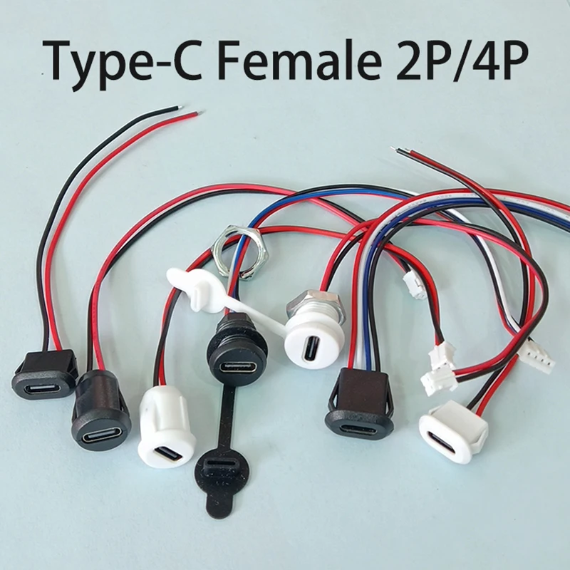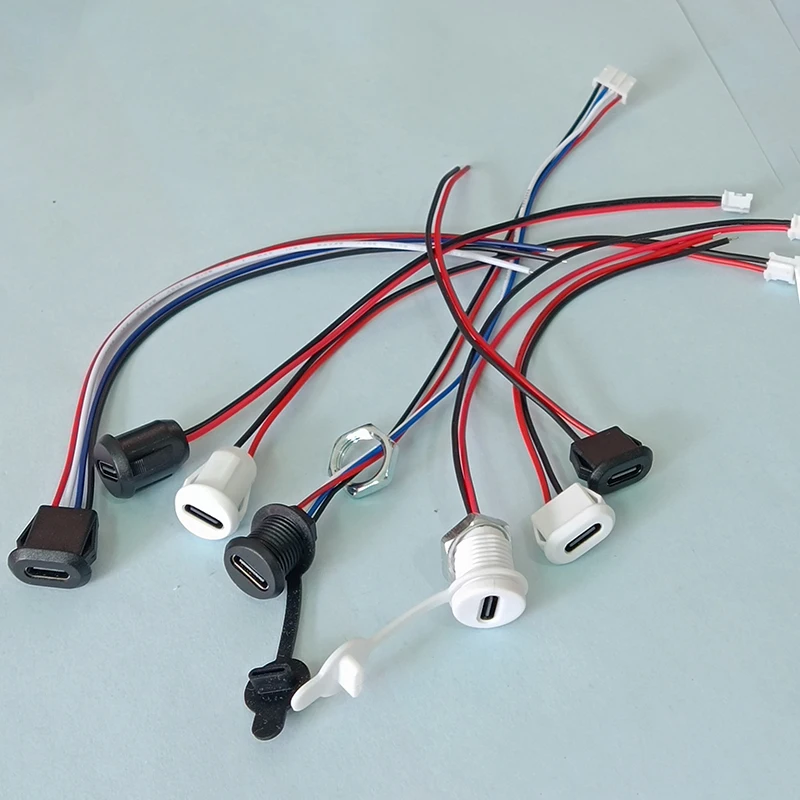 1 Uds TYPE-C conector hembra impermeable USB 2-5 pines con Cable de 10-15cm con placa de bloqueo de tuerca Terminal PH2.0 conector de carga rápida Por