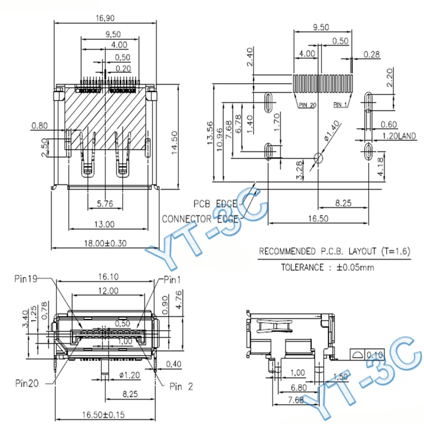 Comprar Conector hembra/Jack 20P con columna para Monitor de interfaz de TV, 10-50 piezas, SMT DP, HDMI, 20 pines