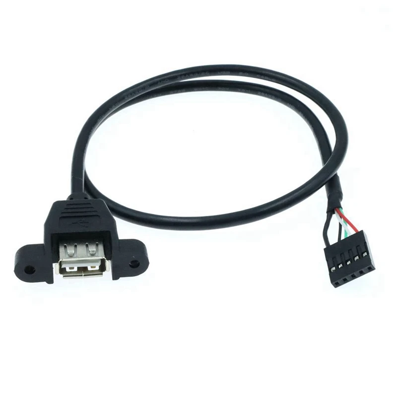 50CM USB 2,0 A montaje en panel hembra a 1x5 Pin F 0,1 "encabezado PCB placa base cableUSB línea fija línea USB línea de placa USB