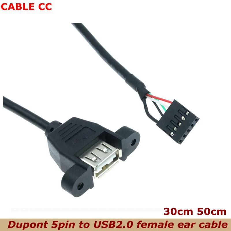 Comprar Conector hembra de montaje en panel USB 2,0 A, cable hembra DuPont de 5 pines, Conector de cable de placa madre, 30cm, 50cm