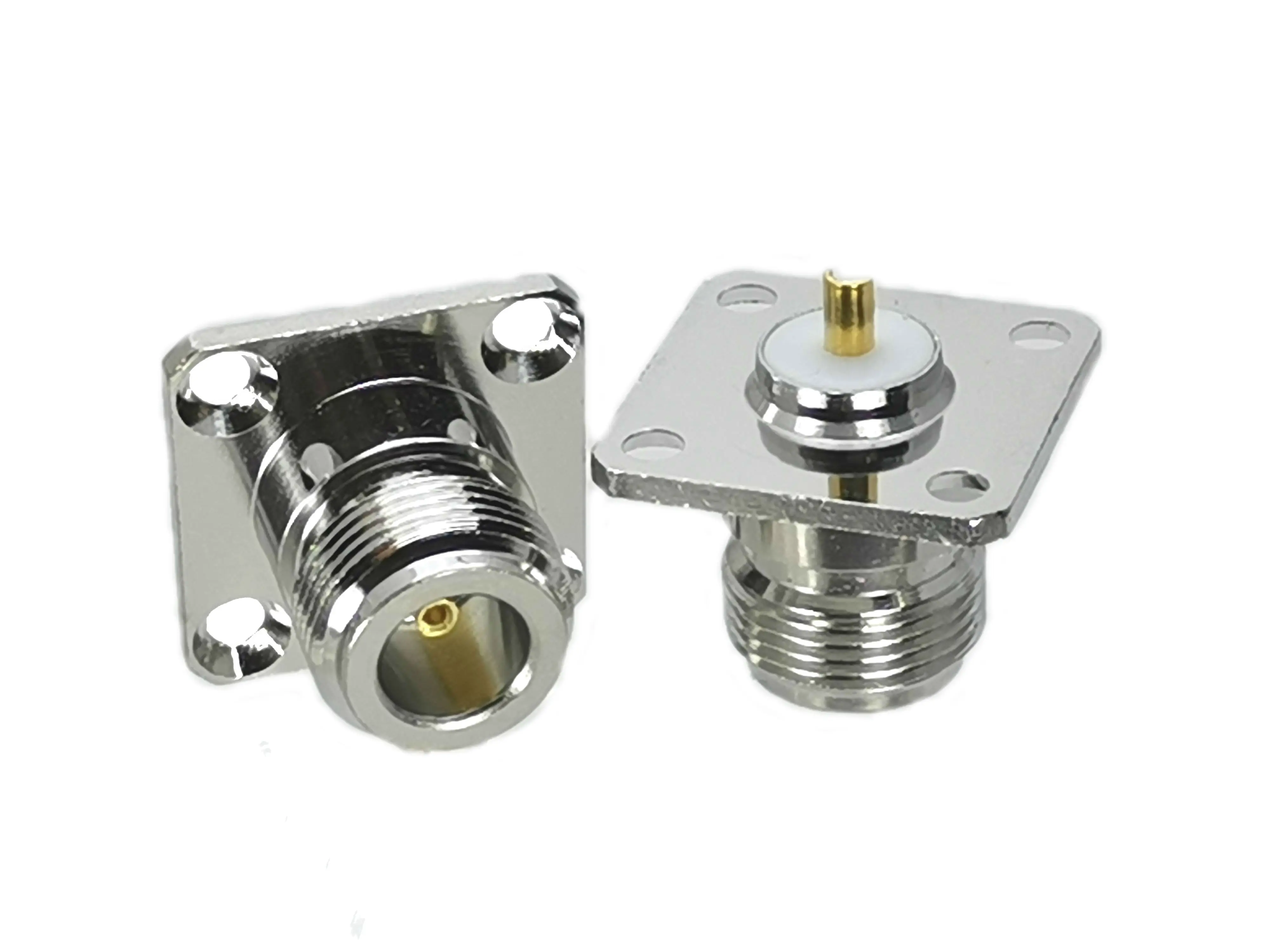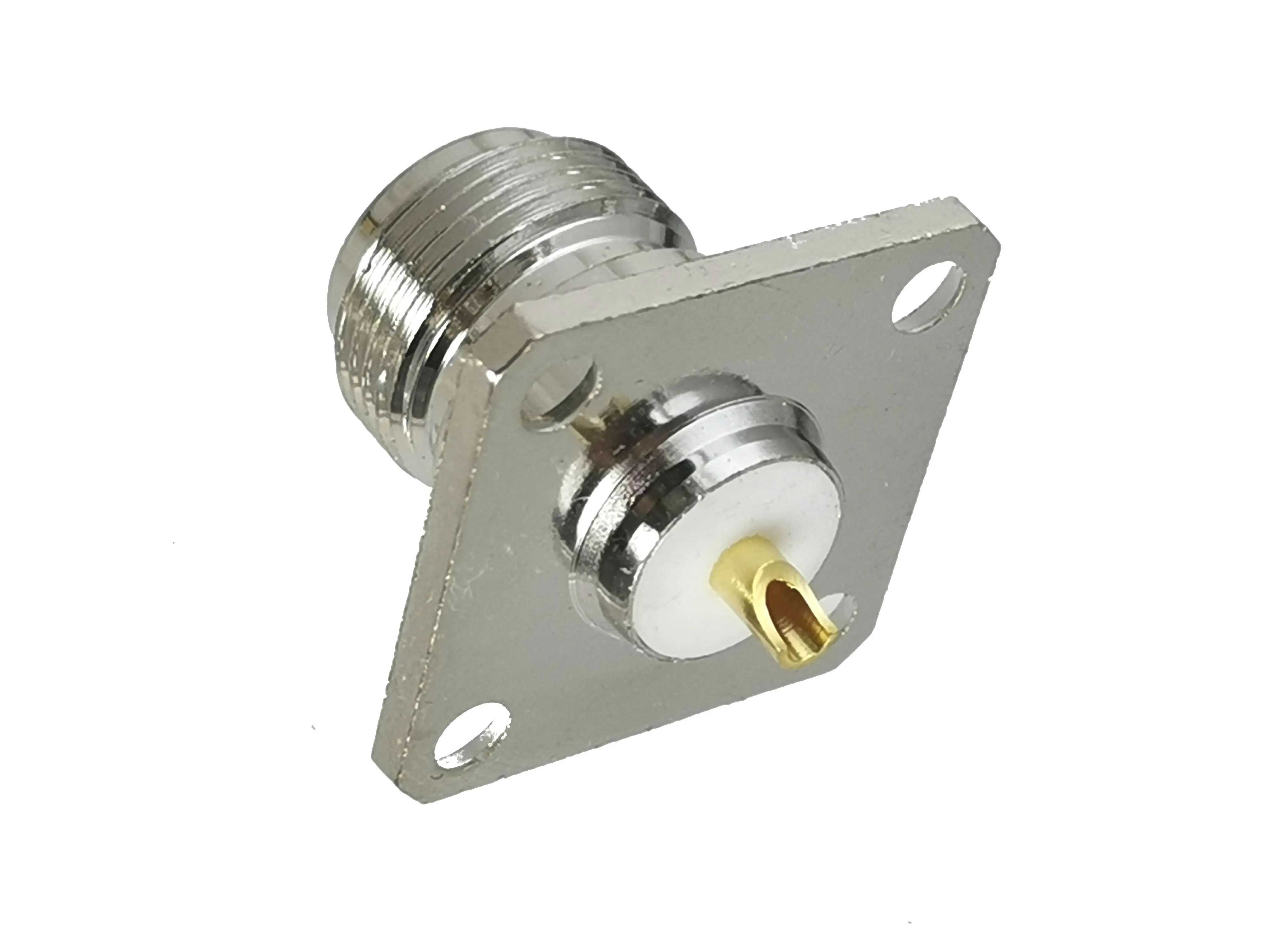 Conector hembra N, conector adaptador RF de montaje en panel de soldadura de brida de 4 agujeros, coaxial, recto, de alta calidad