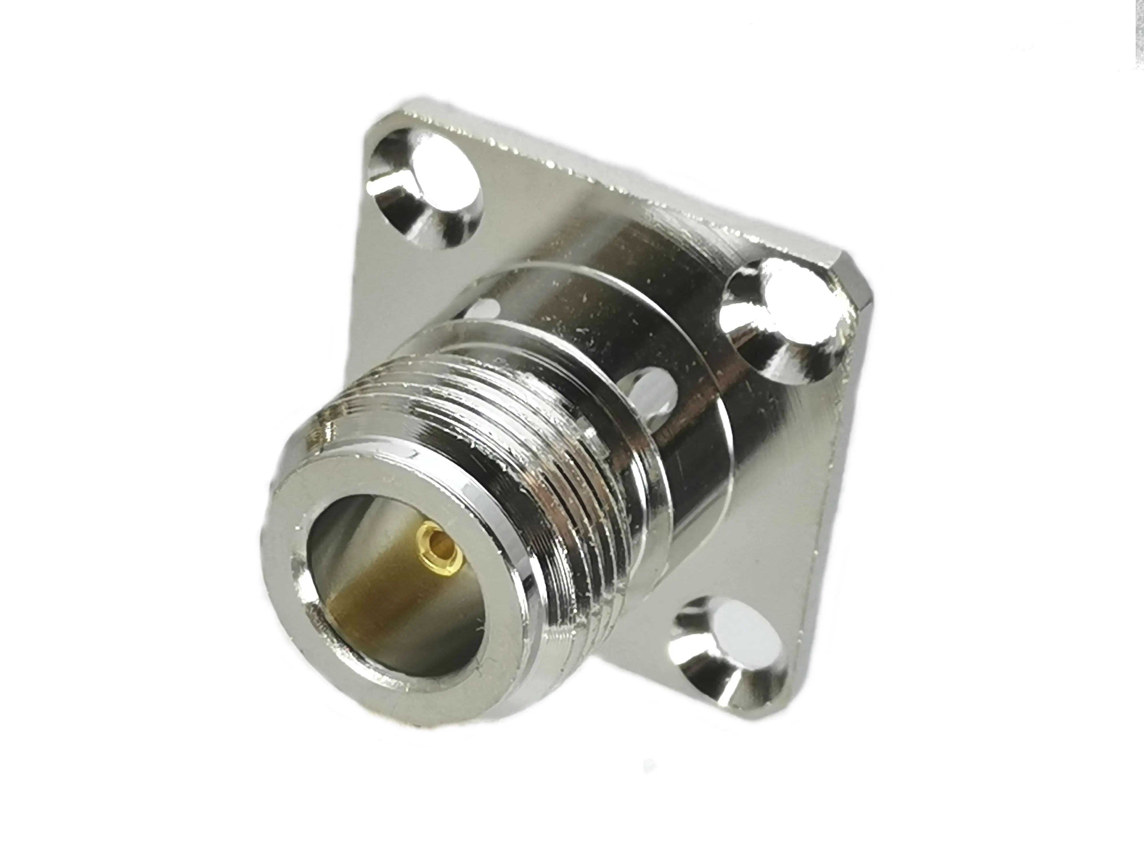 Conector hembra N, conector adaptador RF de montaje en panel de soldadura de brida de 4 agujeros, coaxial, recto, de alta calidad