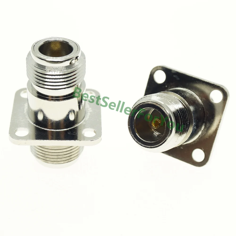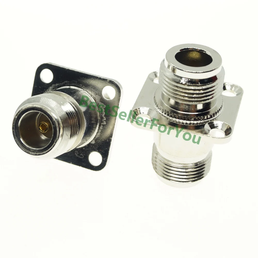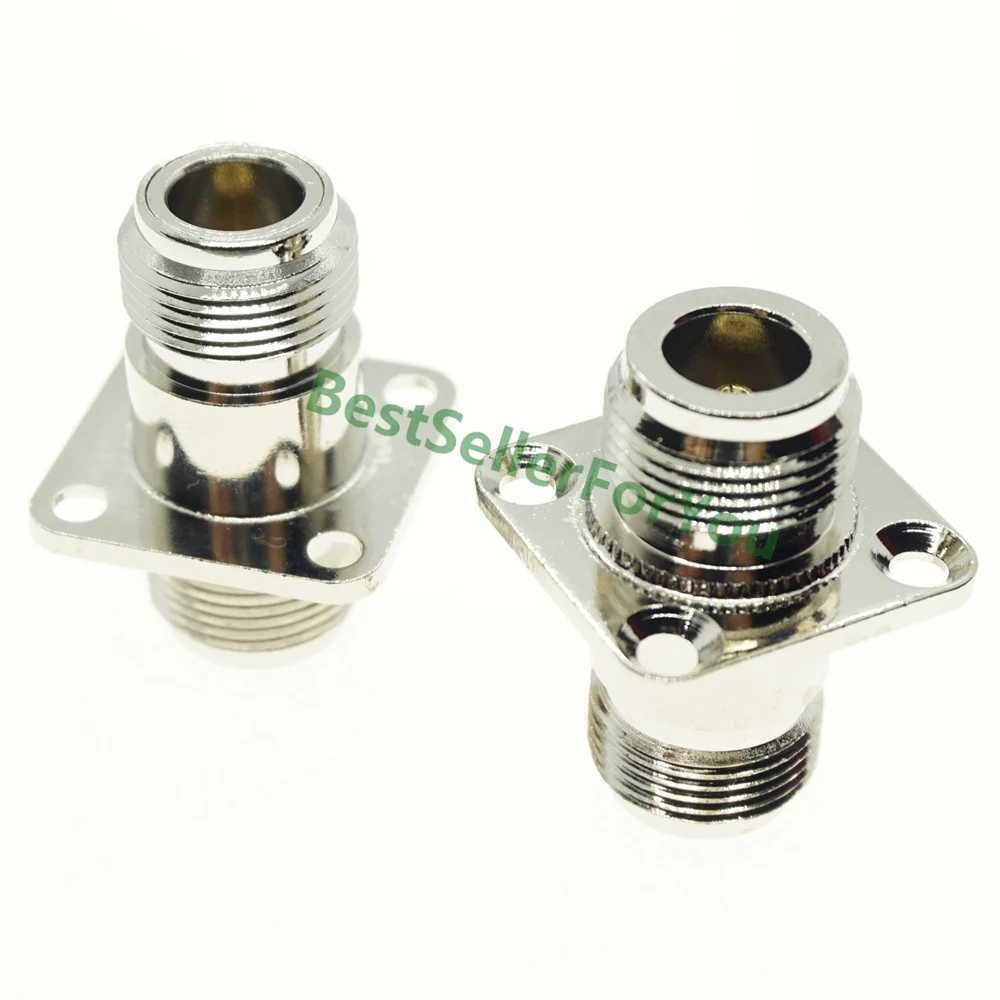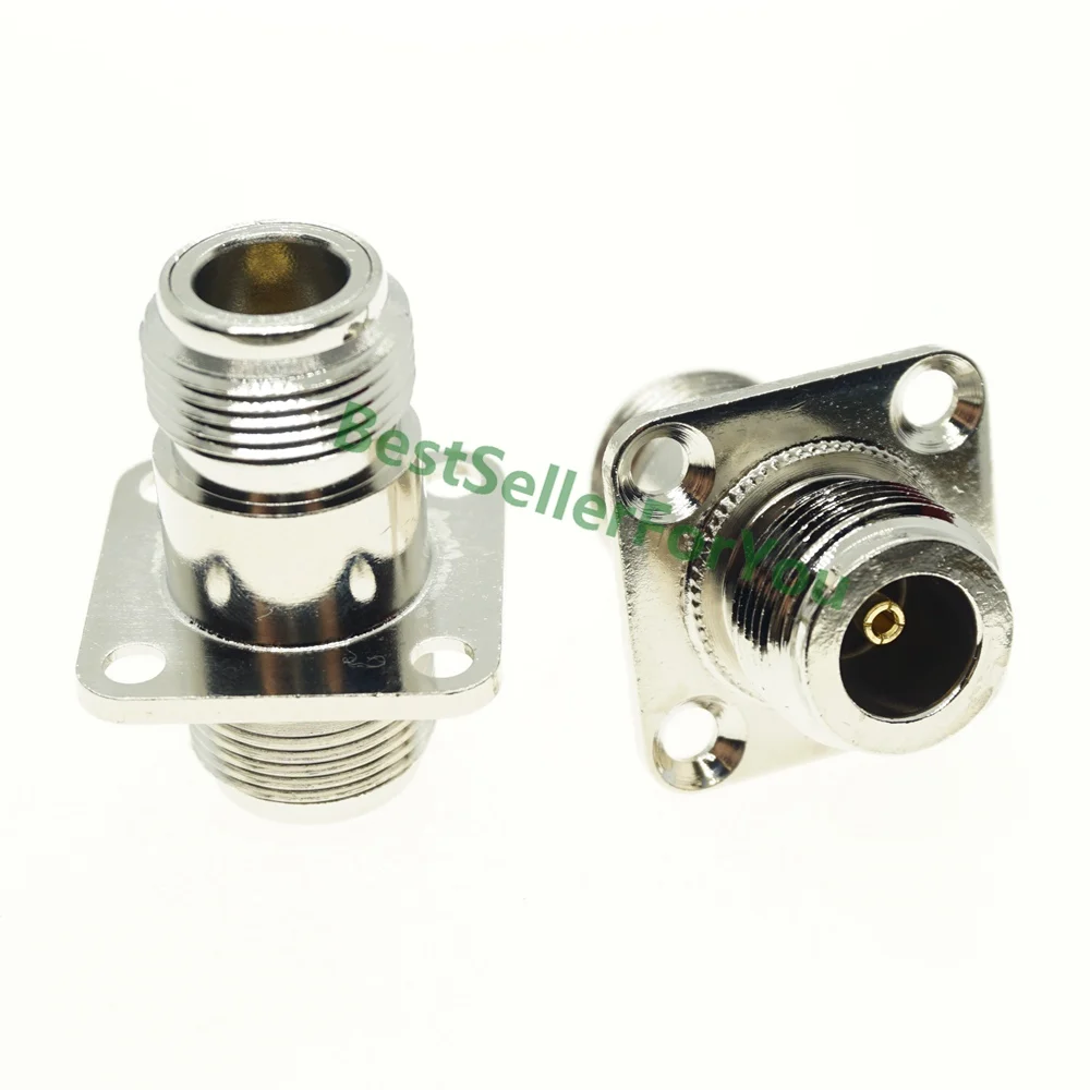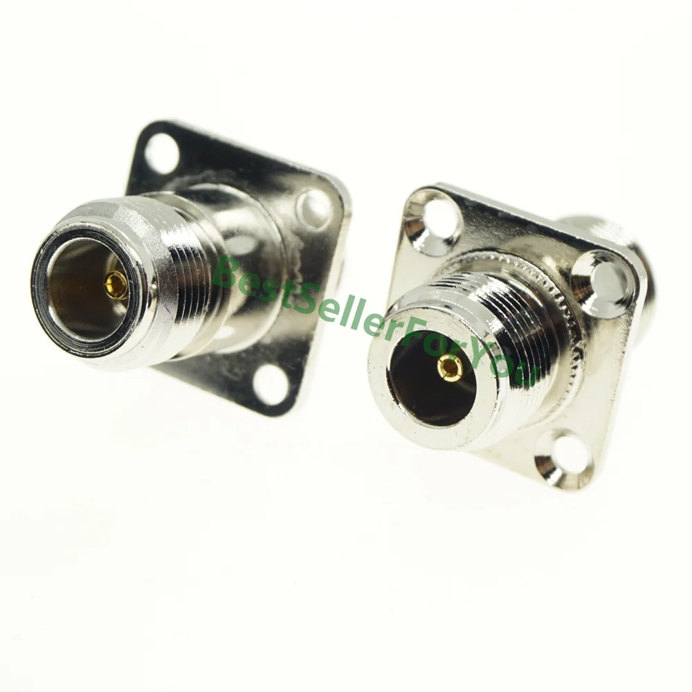 Comprar Conector hembra N a hembra, convertidor de adaptador coaxial RF, chasis de brida de montaje en Panel de 4 orificios, niquelado, nuevo