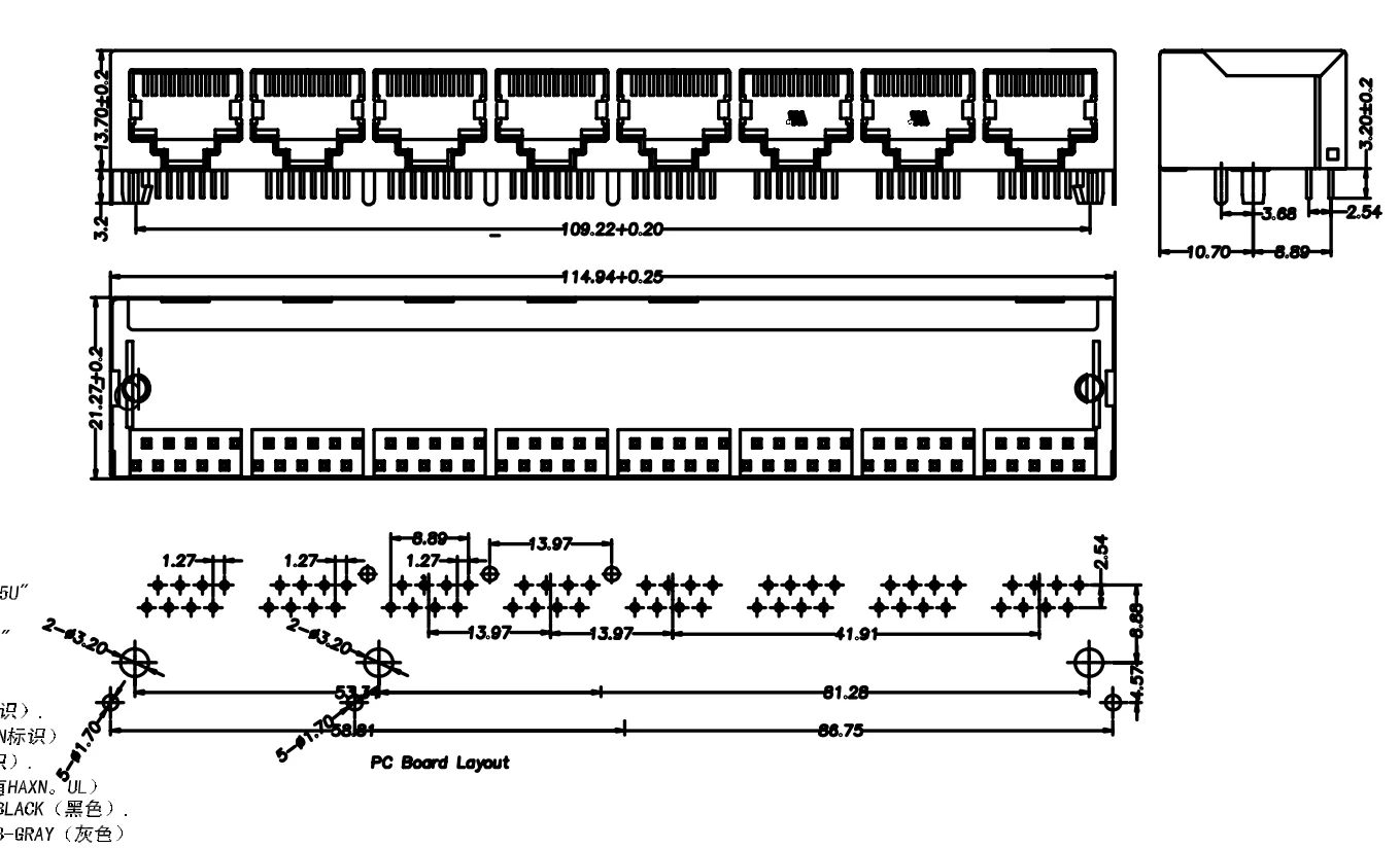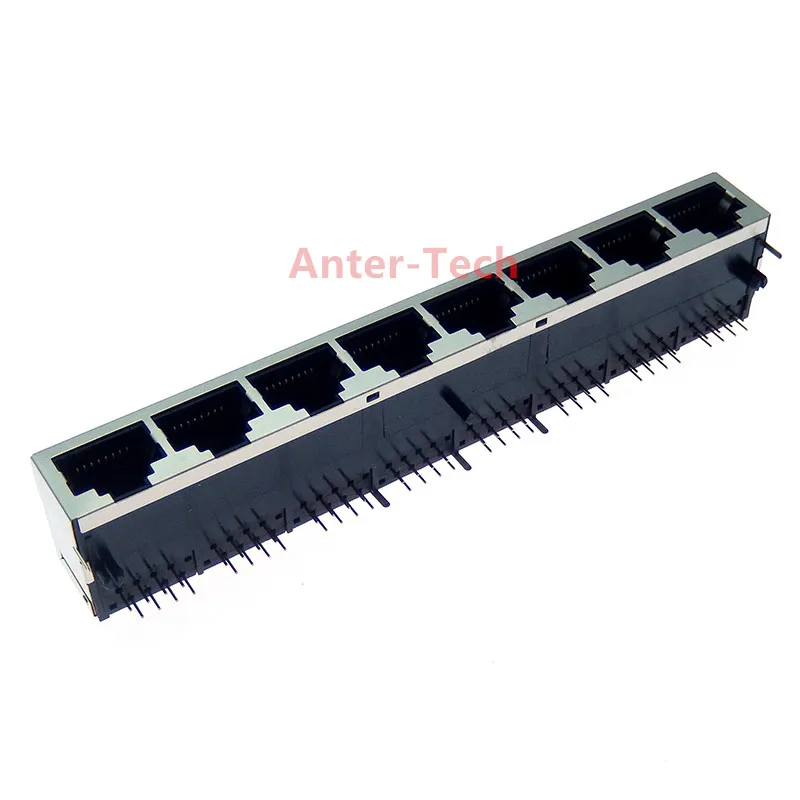 Conector hembra de PCB LAN de red Ethernet RJ45 hembra apilable serie 59 1x8 puertos de muestra de 1