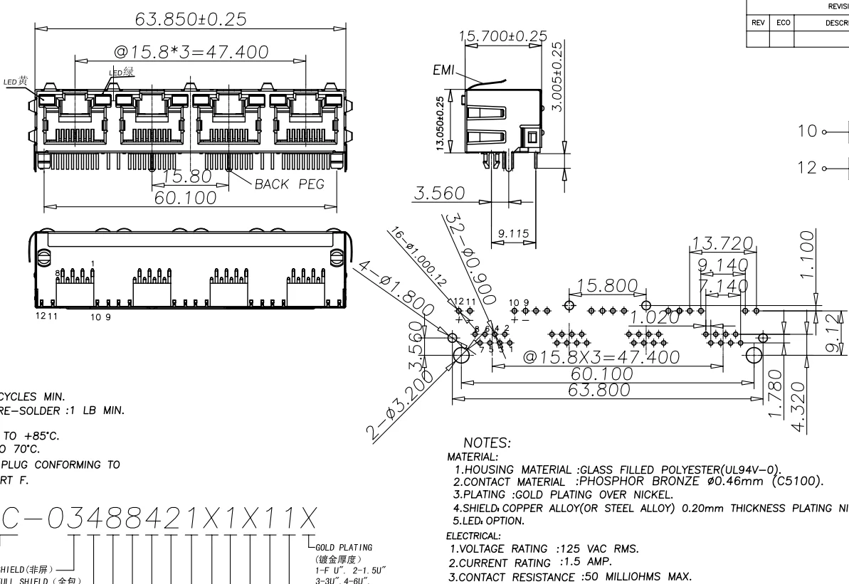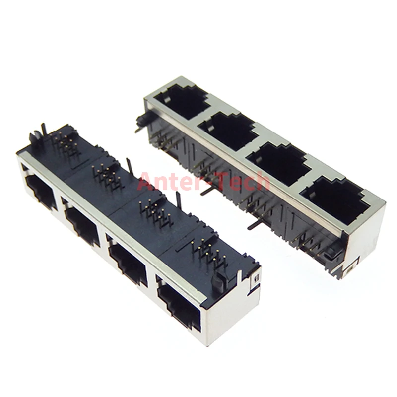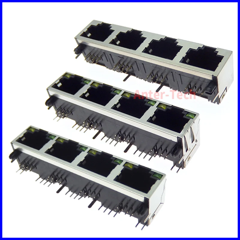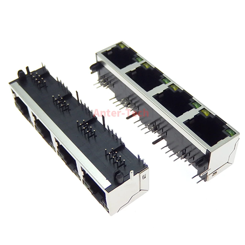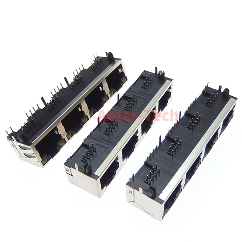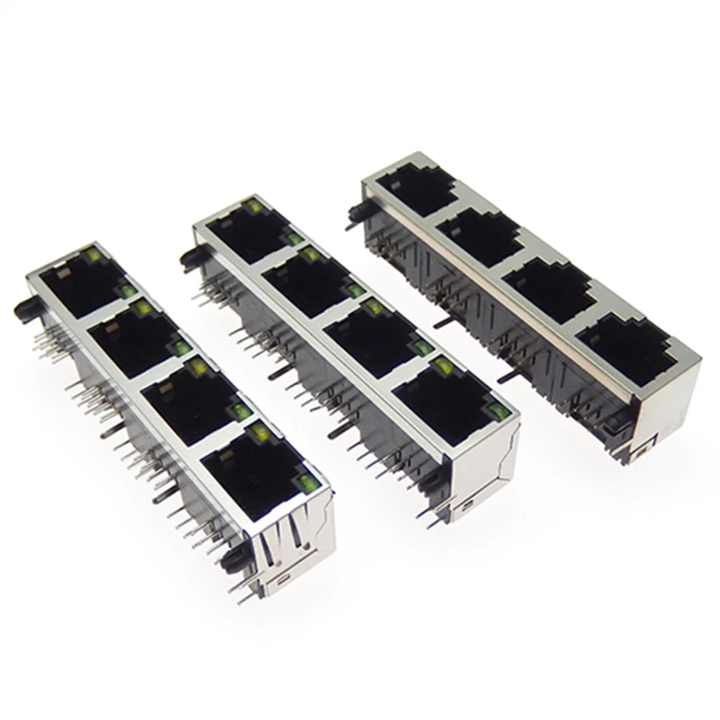 Comprar Conector hembra RJ45 8P8C, 1 piezas, 1x4, 4 puertos blindados, sin/con LED, módulo de internet de red de montaje PCB