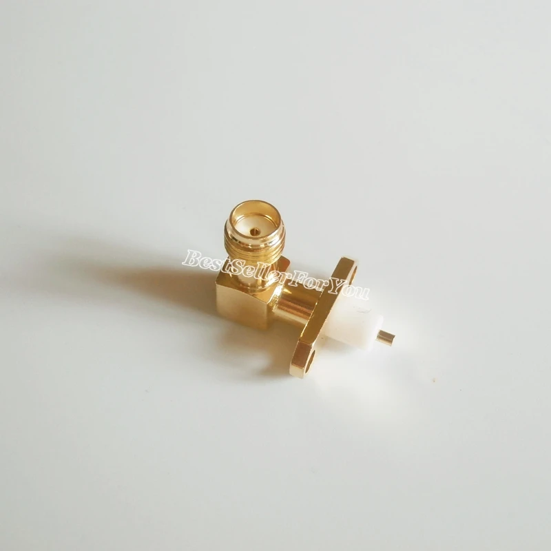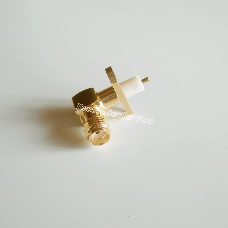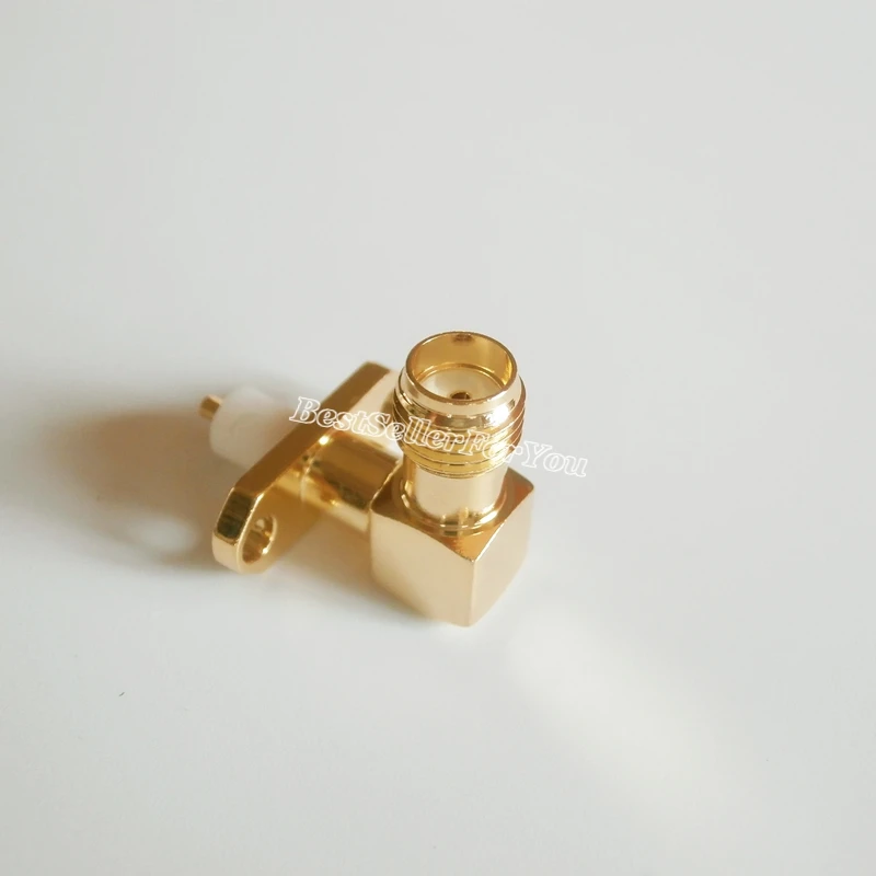 Comprar Conector hembra SMA de 5 piezas, cubierta de brida de 2 orificios, montaje de soldadura de PTFE, conector RF de ángulo recto, dorado