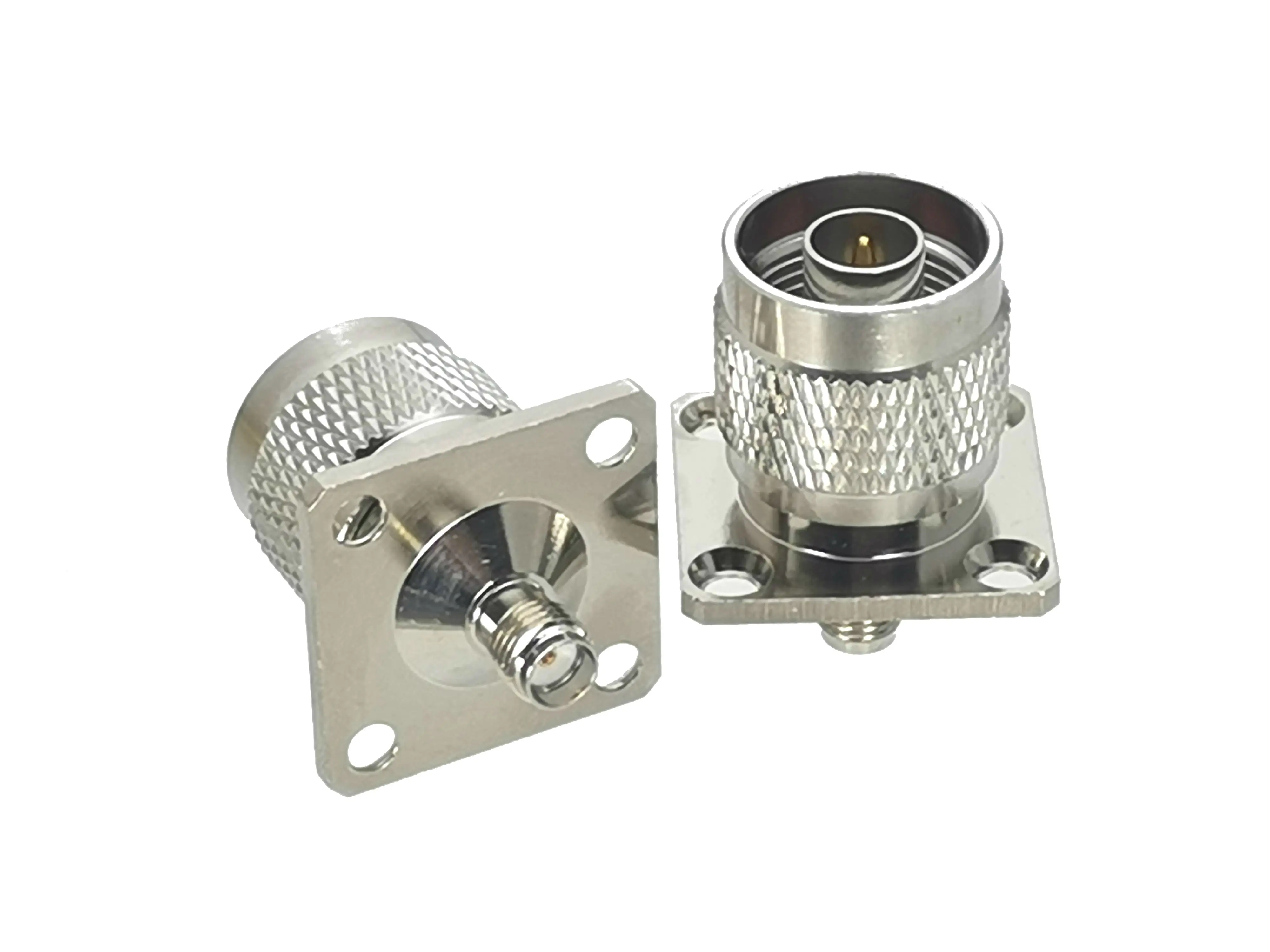 10 piezas SMA hembra jack a N macho enchufe 18,4mm 4 agujeros brida RF adaptador conector Coaxial alta Quanlity 50ohm niquelado