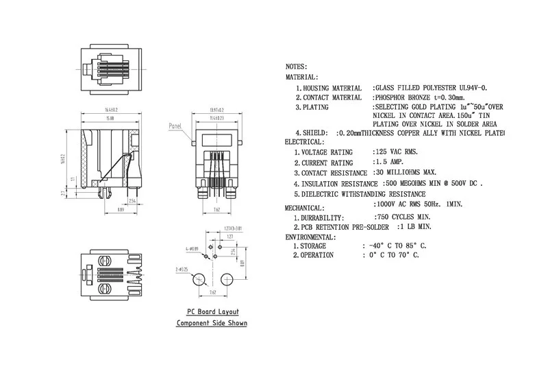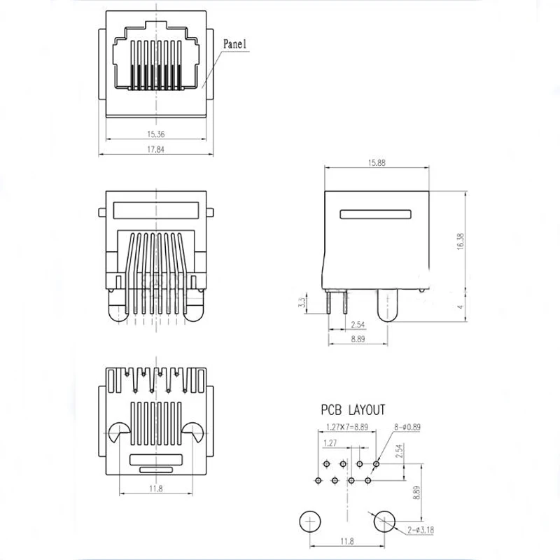 Comprar Conector hembra de teléfono RJ11, 180 grados, Vertical, 8P8C, 6P6C, 4P4C, pcb, 10 Uds.