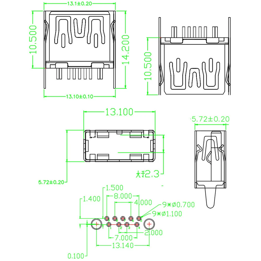 Conector hembra USB 3,0, 10 piezas, 10,5, cuerpo corto, 3,0, transmisión de alta velocidad, interfaz de enchufe de 180 grados