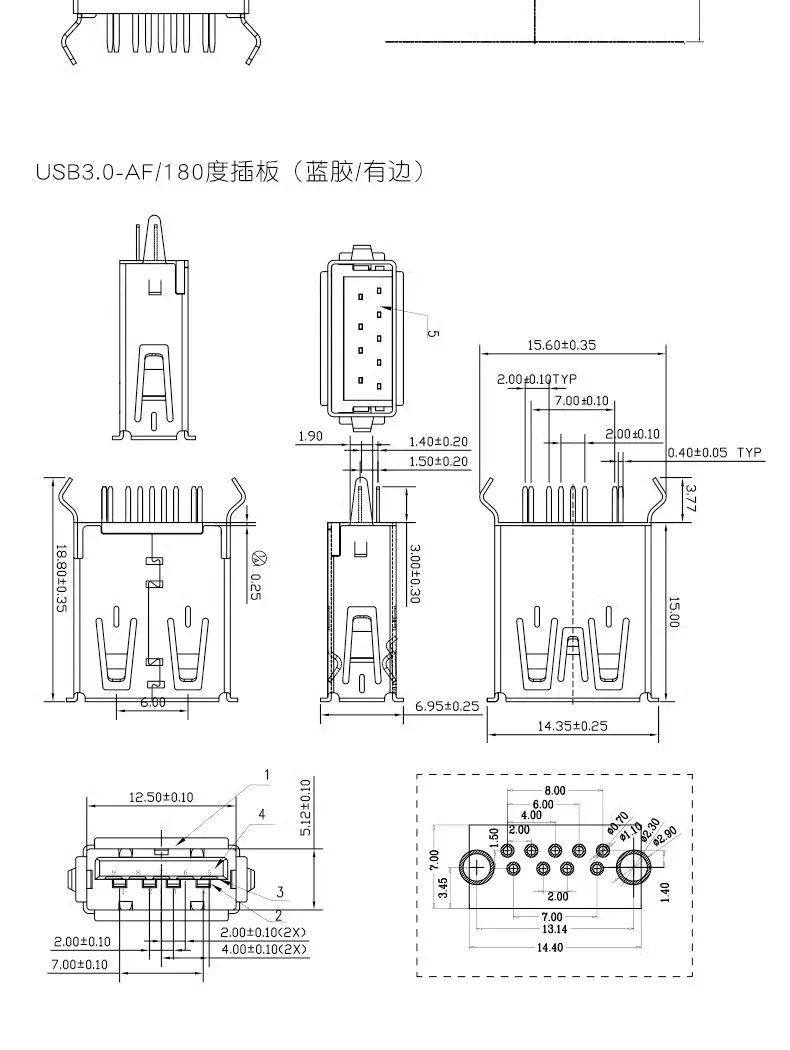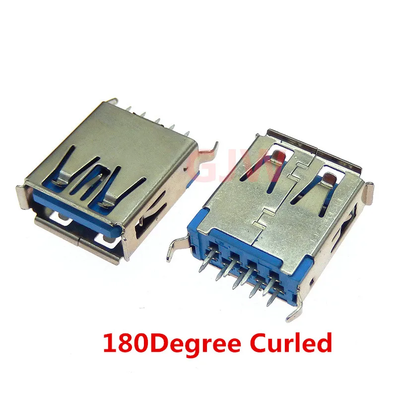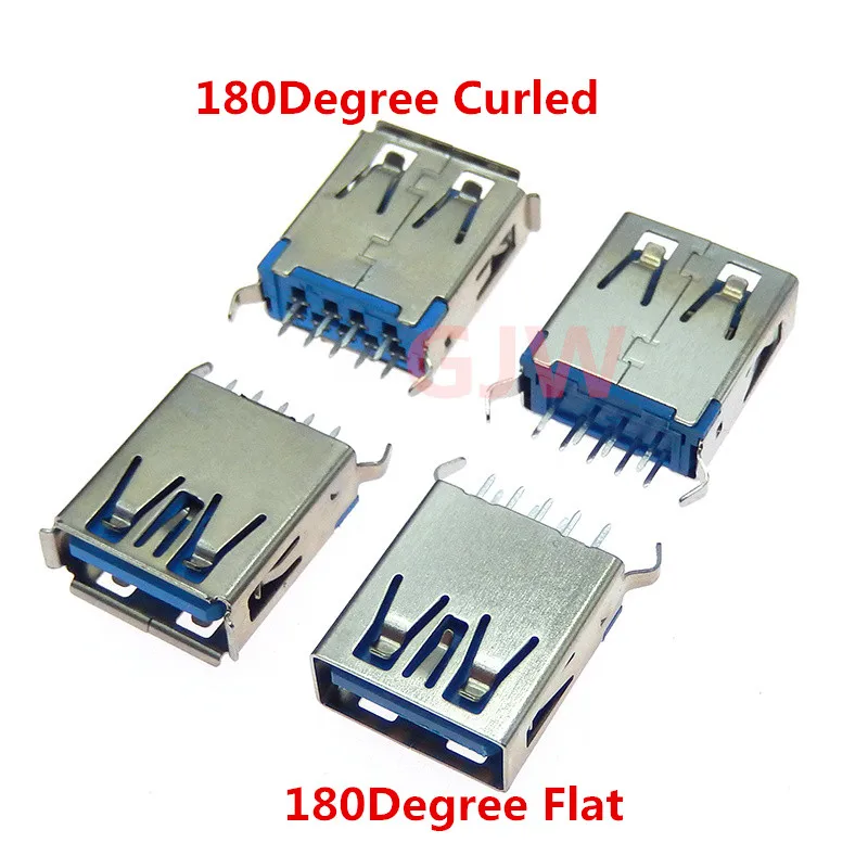 Comprar Conector hembra USB 3,0 piezas, Conector de montaje PCB, línea Vertical usb de 180 grados, 5 TYPE-A