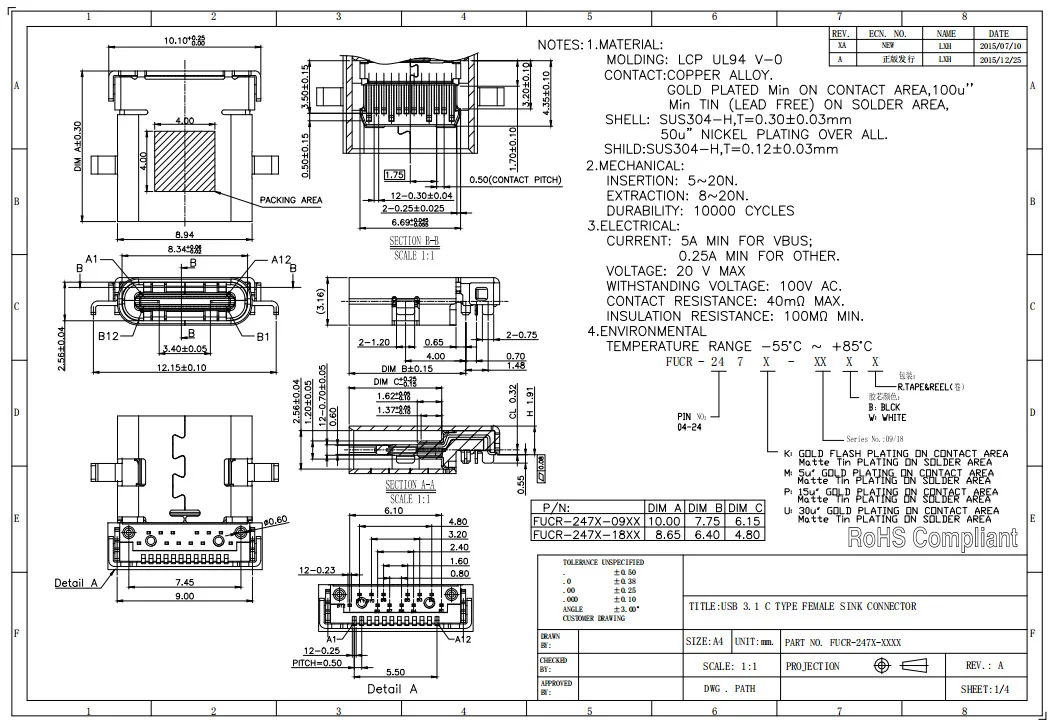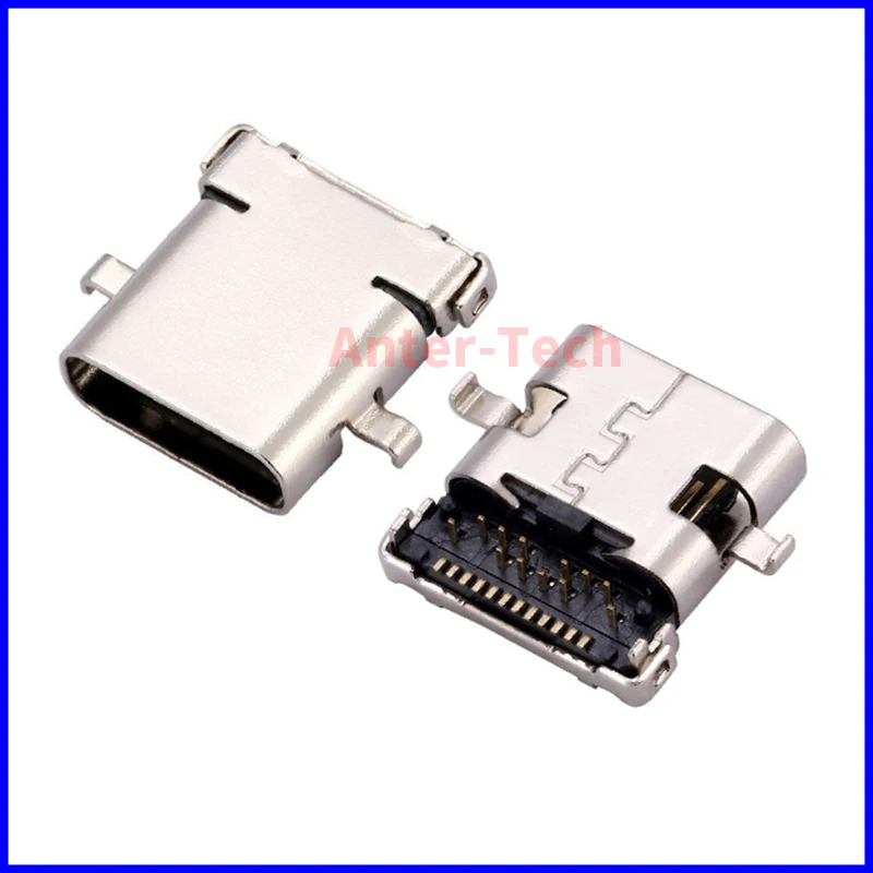 Comprar Conector hembra USB 3,1 tipo C, 10 piezas/2 piezas, 24 Pines, placa Shen, 10,0mm, 90 grados