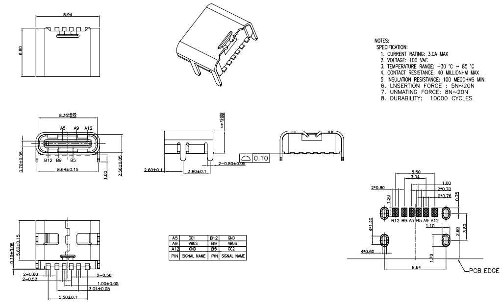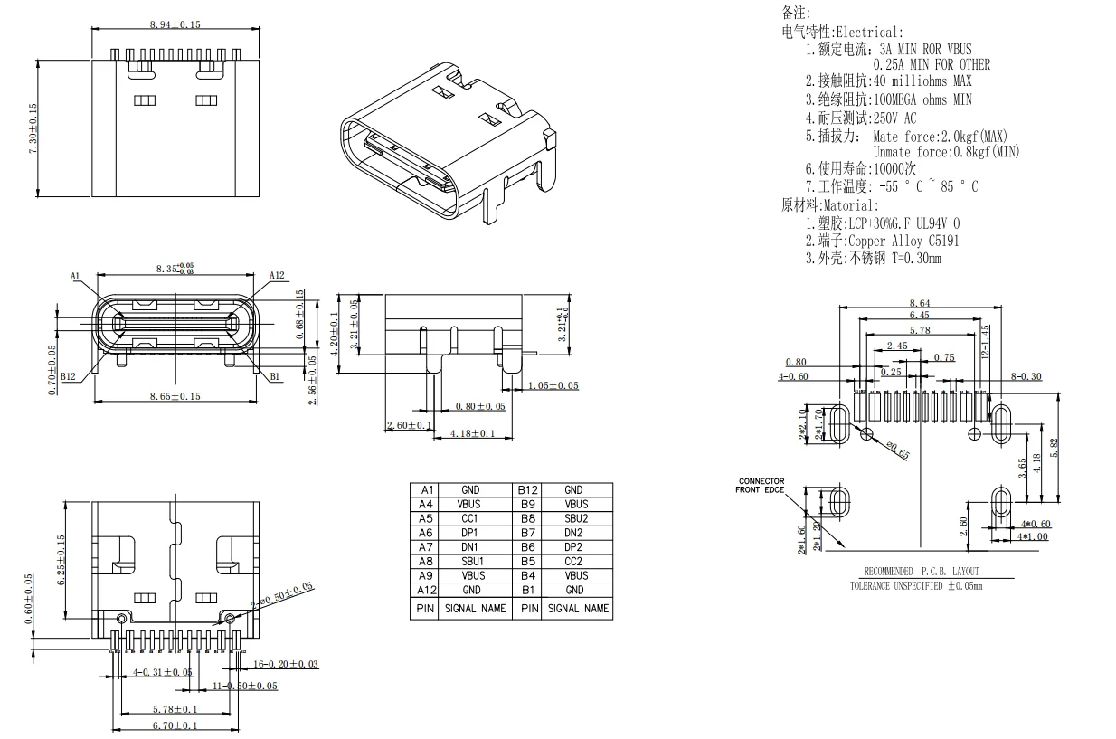Conector hembra USB tipo C 6P/16P 4 pines fijos SMD enchufe de carga rápida de alta corriente blanco naranja azul verde 10 Uds
