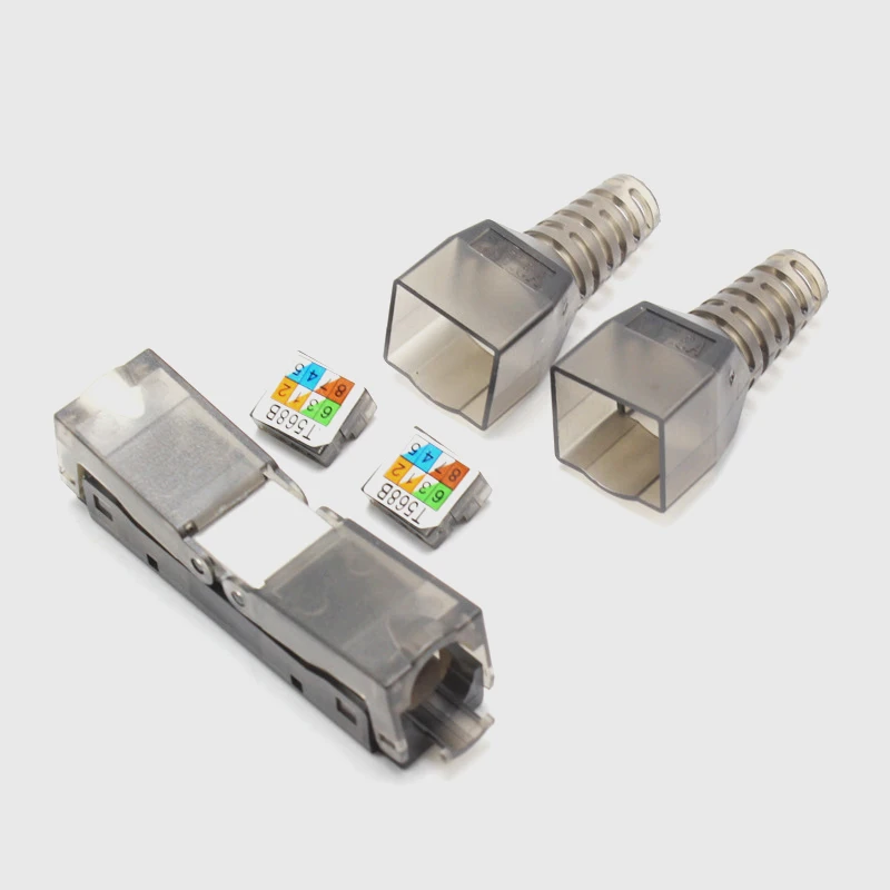 Características:* Diseñado y fabricado de acuerdo con los estándares internacionales EIA / TIA-568B, YD / T926.1-2009, puede lograr una mayor fiabilidad, tiene las funciones de prevención de aflojamiento, autobloqueo e inserción flexible.* El material de la carcasa de la cabeza de cristal es material de PC de alta calidad, el material de la hoja de oro es bronce fosforoso, la superficie está niquelada, el contacto está chapado con un espesor de 50U "(pulgadas), Y la vida útil del enchufe es 1000 veces.* Adecuado para terminar en el sitio y conectar cables para lograr la conexión entre equipos, bastidores de puente y módulos.Los principales parámetros:* Estándares industriales: compatible con RoHS, compatible con ELV y certificado por FCC.* Material de la carcasa: policarbonato.* Clasificación de incendios de la Caja: Al menos cumplen con los requisitos de seguridad de UL94V-0.* Material del Terminal: bronce fosforoso.* Chapado en el área de contacto: chapado en oro 50 μ (pulgadas).* Temperatura ambiente: -40 ° C ~ + 60 ° C* Voltaje de funcionamiento: el voltaje máximo de funcionamiento es de 150V, y la corriente de funcionamiento es de 1,5 a 25 ° C.* Durabilidad: 750 ciclos de acoplamiento