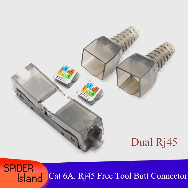 Comprar Conector de herramienta libre CAT6A Cat 6A, Cable de red sin presión a tope, Módulo de conector de cabeza de cristal Dual Rj45, 10 unids/lote