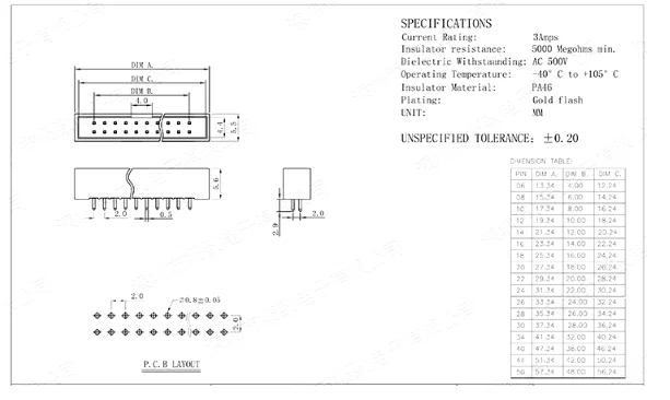 Conector IDC macho de pines rectos de paso de 2,0mm DC3 de 10 piezas 6P 8P 10P 12P 14P 16P 18P 20P 24P 26P 40P