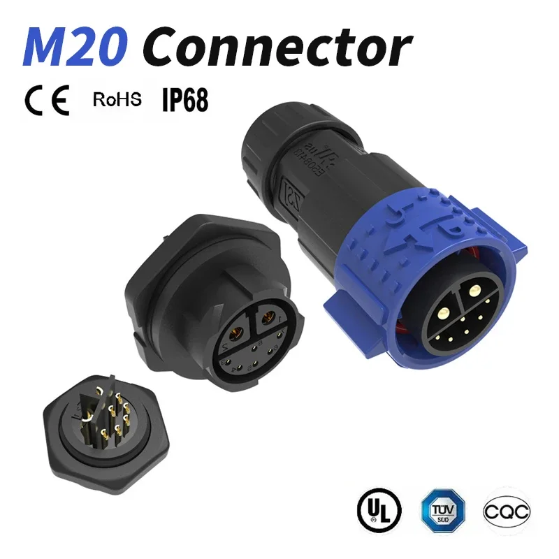 Conector impermeable 2 + 6 corriente exterior + señal híbrida soldada Cable de bloqueo automático enchufe IP68 8 pines junta de cabeza macho hembra