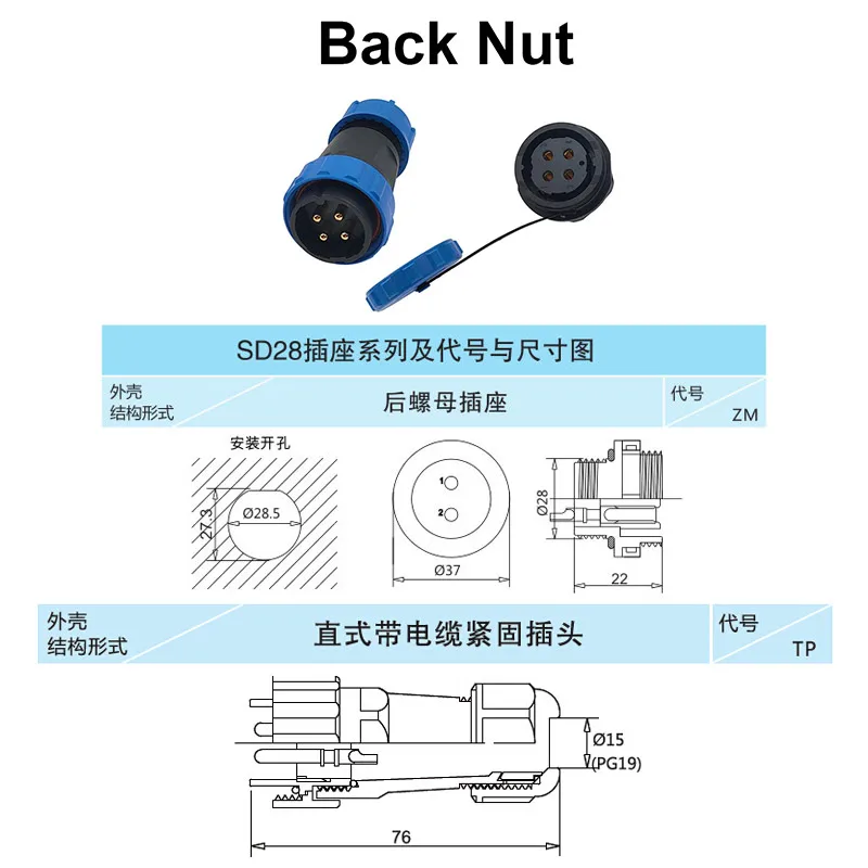 Parámetro de especificaciónCarcasa material termoplástico PA66Aislante termoplástico PPS resistente a altas temperaturas 260Material de contacto cobre (chapado en oro, plateado)Anillo de sellado de gel de síliceAsiento femenino masculino del género de la viviendaConexión rosca conexiónTemperatura de funcionamiento-25 grados C ~ 110 grados CHumedad relativa 90% ~ 95% (40 + 2 grados C)Sellado en línea con IP68Diámetro del cable aplicable 12,0 ~ 15,0mmVida mecánica más de 500 veces