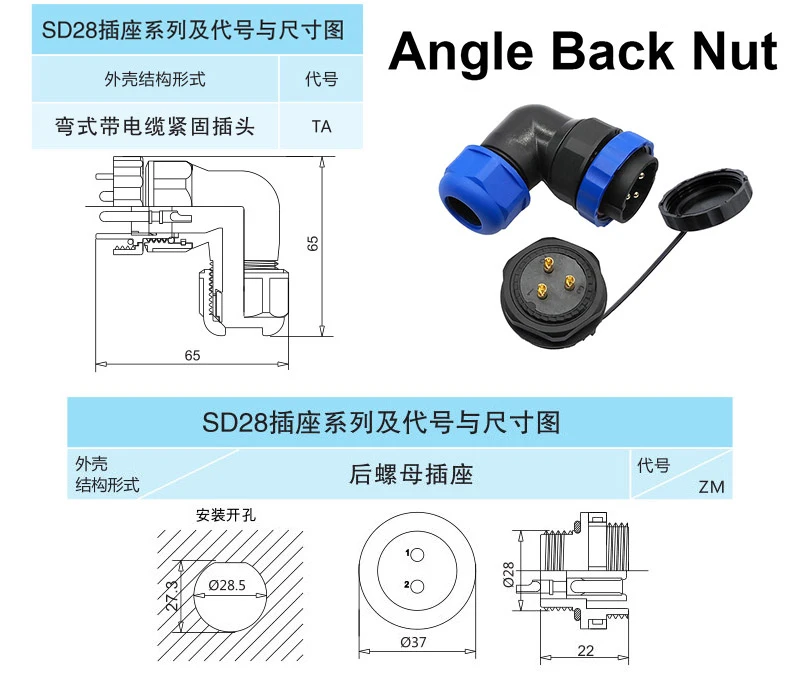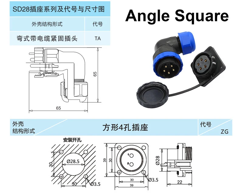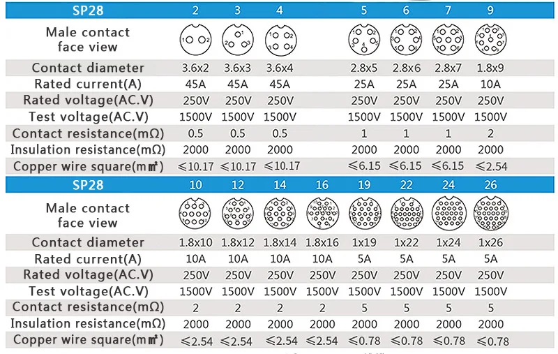 Comprar Conector impermeable de ángulo cuadrado, acoplamiento SP28, tuerca trasera, 2, 3, 4, 5, 6, 7, 8, 9, 10, 12, 14, 16, 19, 22, 24 conectores de Cable IP68 de 26 Pines, enchufe