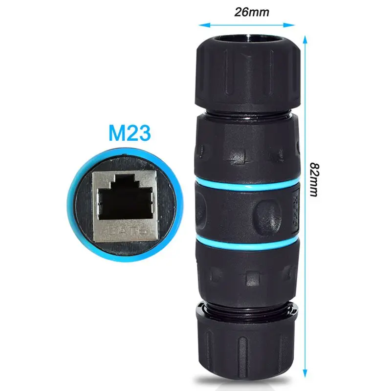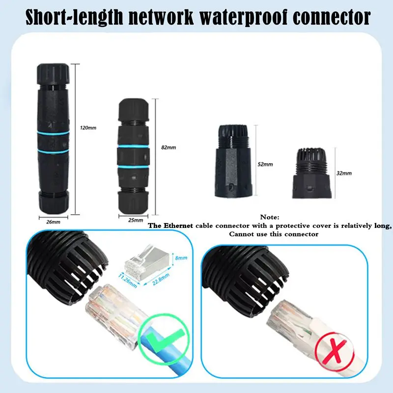 Conector impermeable IP68, extremo de red RJ45, conector de cable de red de monitoreo exterior, conector de cabeza de cristal corto 82cm