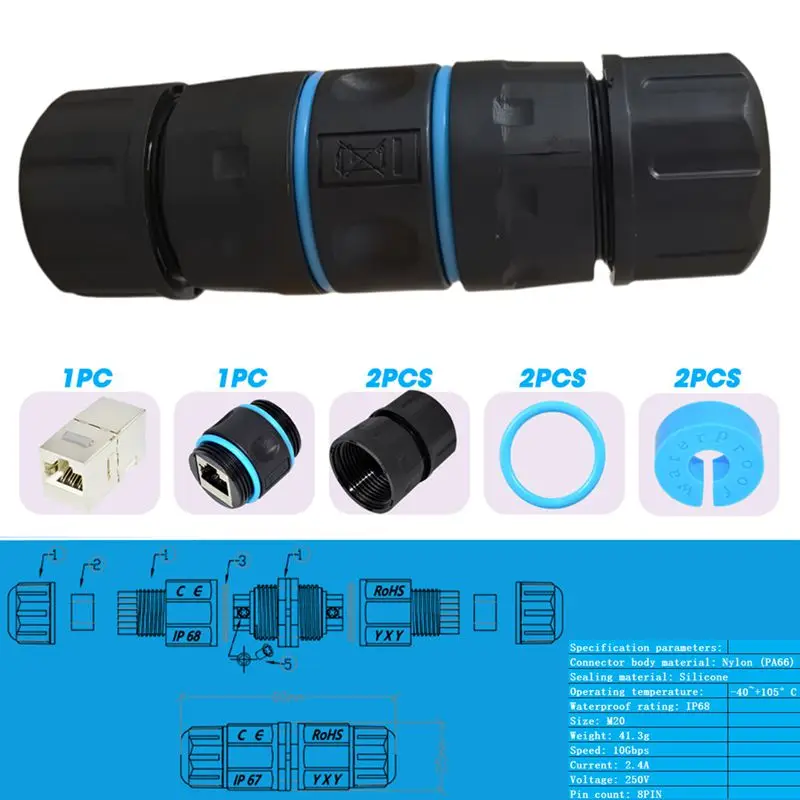 Clasificación IP68 (impermeable y a prueba de polvo), adecuada para uso en exteriores, protegiendo su conexión Ethernet RJ45.Muy adecuado para pantallas de iluminación navideña para exteriores, cámaras de seguridad IP, aplicaciones industriales y otros dispositivos digitales.