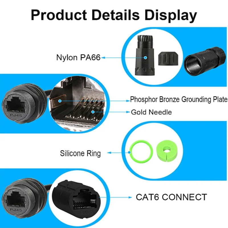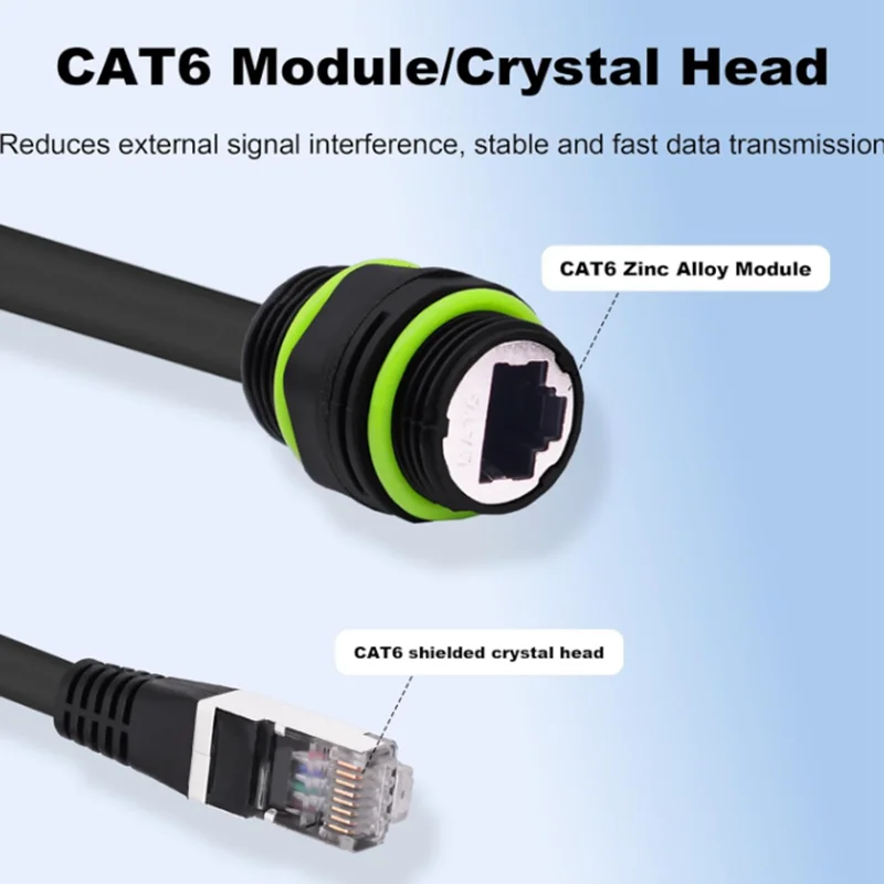 El conector RJ45 8P8C Ethernet cat6 hembra a hembra a prueba de polvo y impermeable se utiliza para convertir cables de conexión CAT5/5e/6 estándar en productos impermeables para conectar Ethernet en entornos industriales o exteriores hostiles.La junta de sellado proporciona una protección óptima contra la humedad y otros contaminantes, con un nivel de protección IP68.Adopta un sistema de conexión RJ45 basado en estándar para garantizar la compatibilidad con el hardware existente.Fácil de instalar: es un acoplador de instalación RJ45 miniaturizado hembra a hembra que ahorra espacio, que no requiere soldadura ni herramientas de instalación e simplemente inserta directamente el conector RJ45 estándar para una instalación rápida.