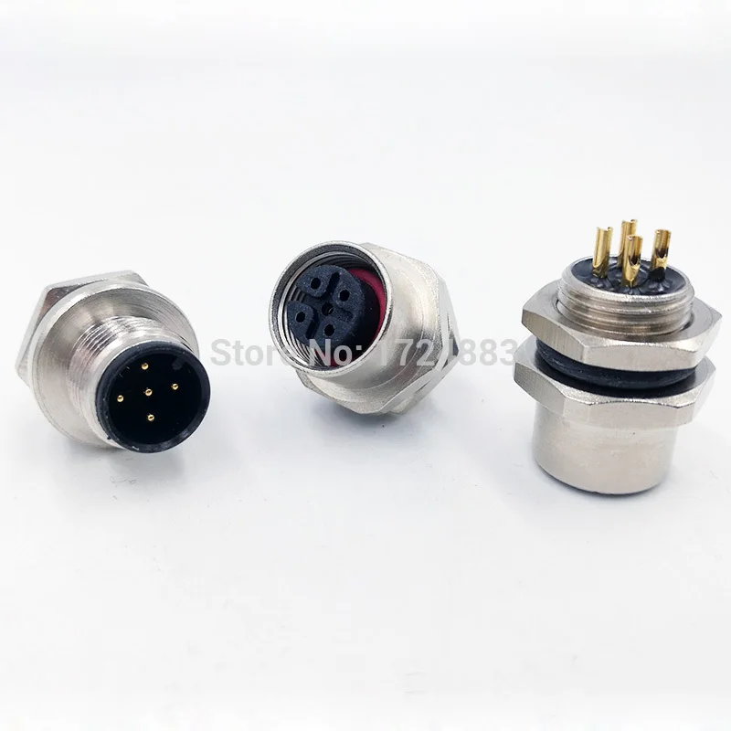 M12 panel de montaje trasero Brida Socket Sensor Conector Impermeable Tornillo Roscado acoplamiento Macho Hembra 4 5 8 Pines1,50-2,40 USD/unidad