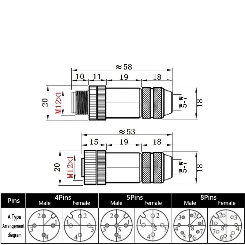 Comprar Conector impermeable con Sensor M12, blindaje de señal Matel, tornillo macho y hembra roscado de 4, 5 y 8 pines