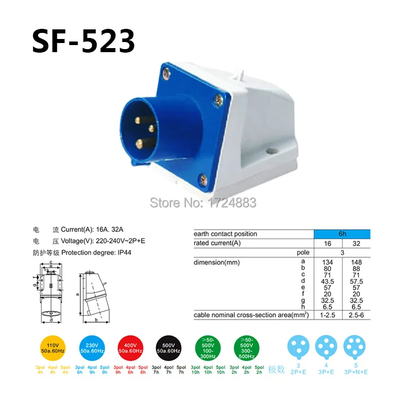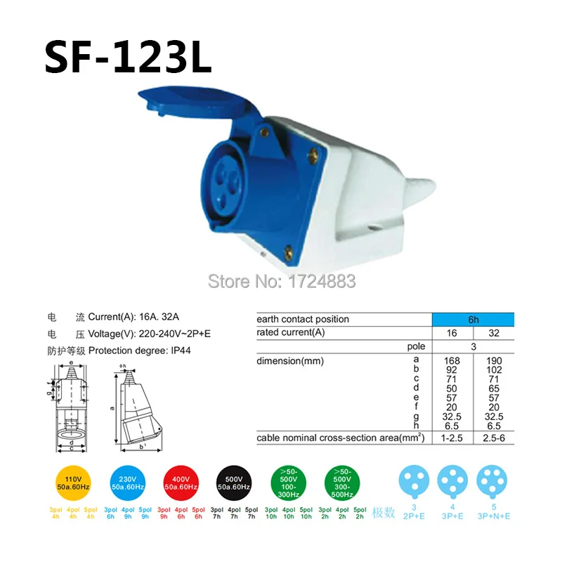Comprar Conector Industrial de 3 polos 32A, enchufes macho y hembra SF-123/SF-323/SF-423/SF-523/SF-623/SF-123L, resistente al agua IP44, 220-240V ~ 2P + E
