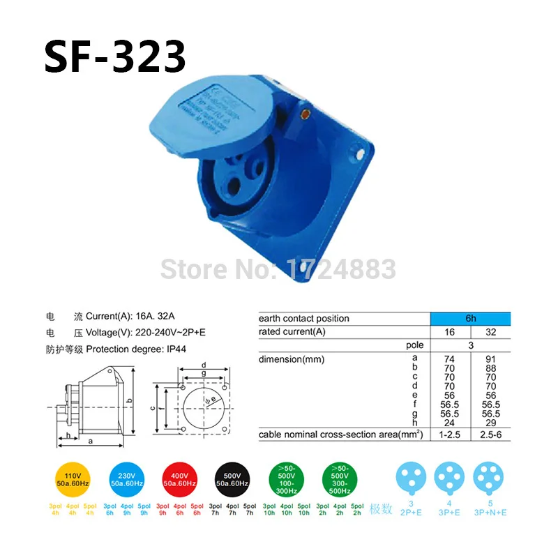 Comprar Conector Industrial de 3 polos 32A, enchufes macho y hembra SF-123/SF-323/SF-423/SF-523/SF-623/SF-123L, resistente al agua IP44, 220-240V ~ 2P + E