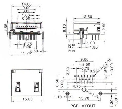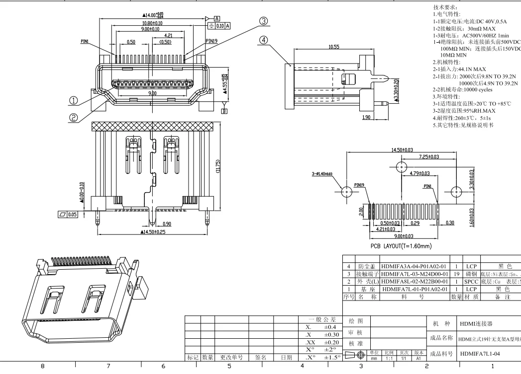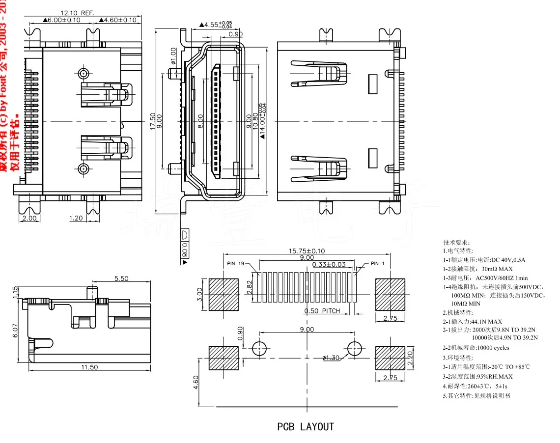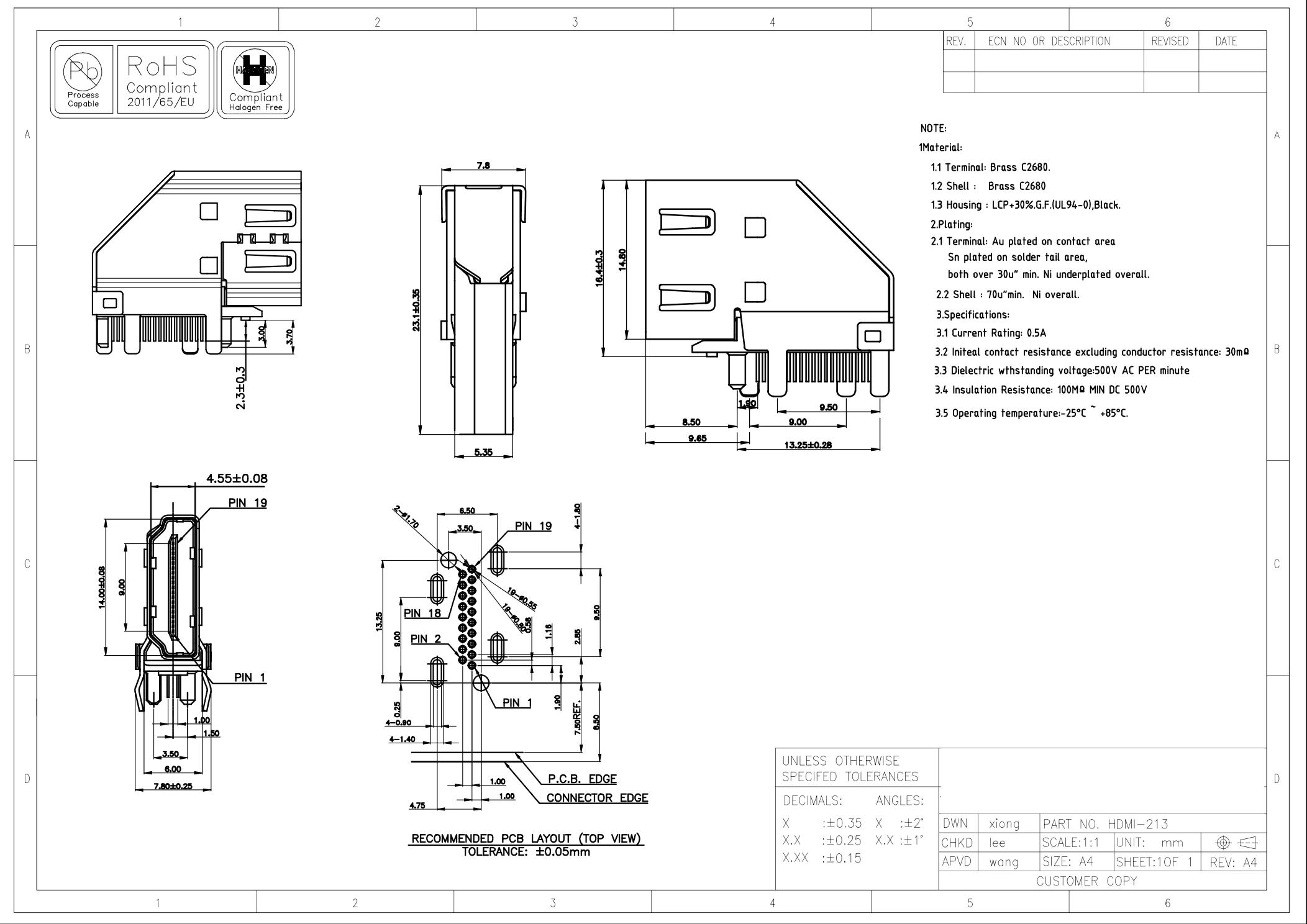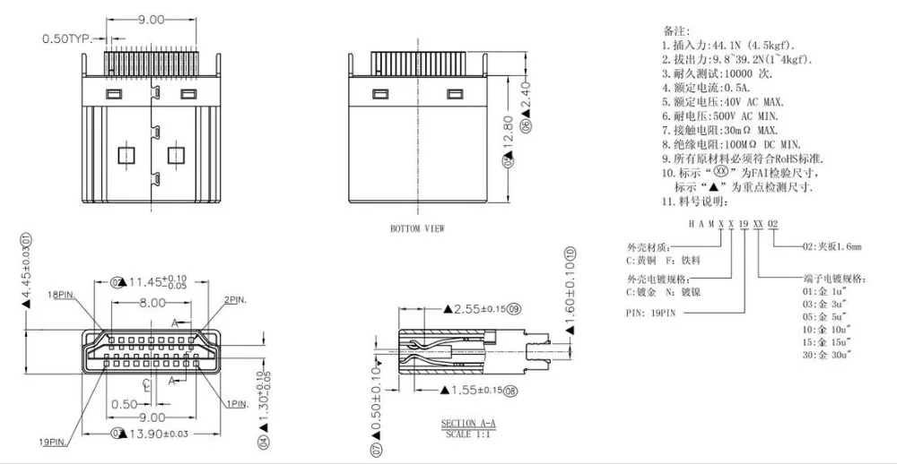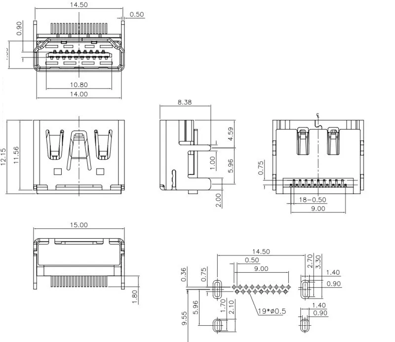 Comprar Conector de interfaz HD Compatible con HDMI, SMD, 19 pines, 19 P, ángulo recto Vertical, superficie de zócalo, receptáculo PCB, 10 Uds.
