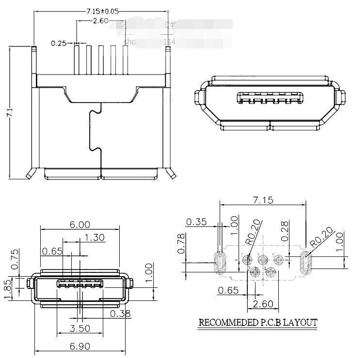 Comprar Conector de interfaz MICRO 5P hembra, 180 grados, Mike, 5 pines, USB, rizo de borde Vertical, 20 Uds./lote