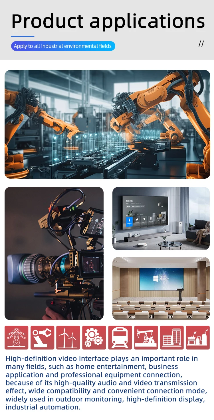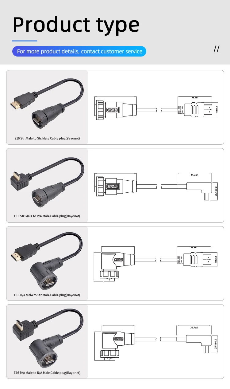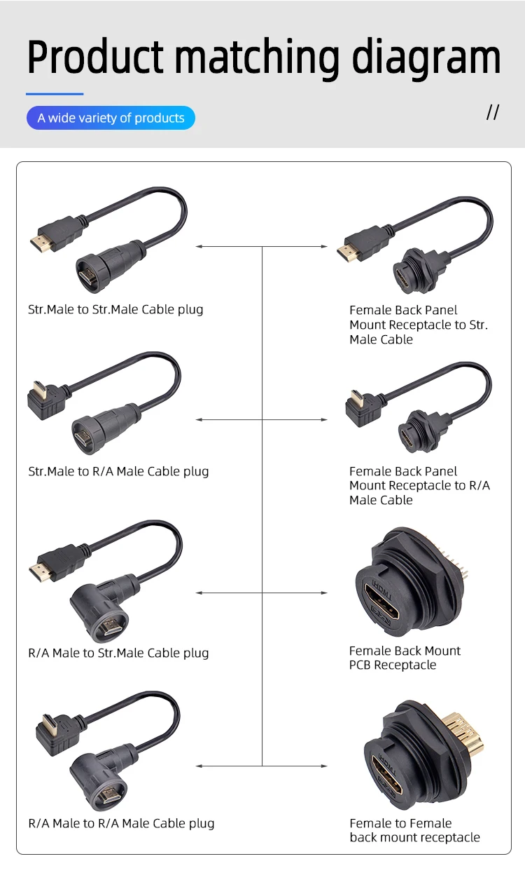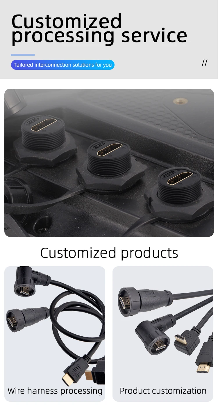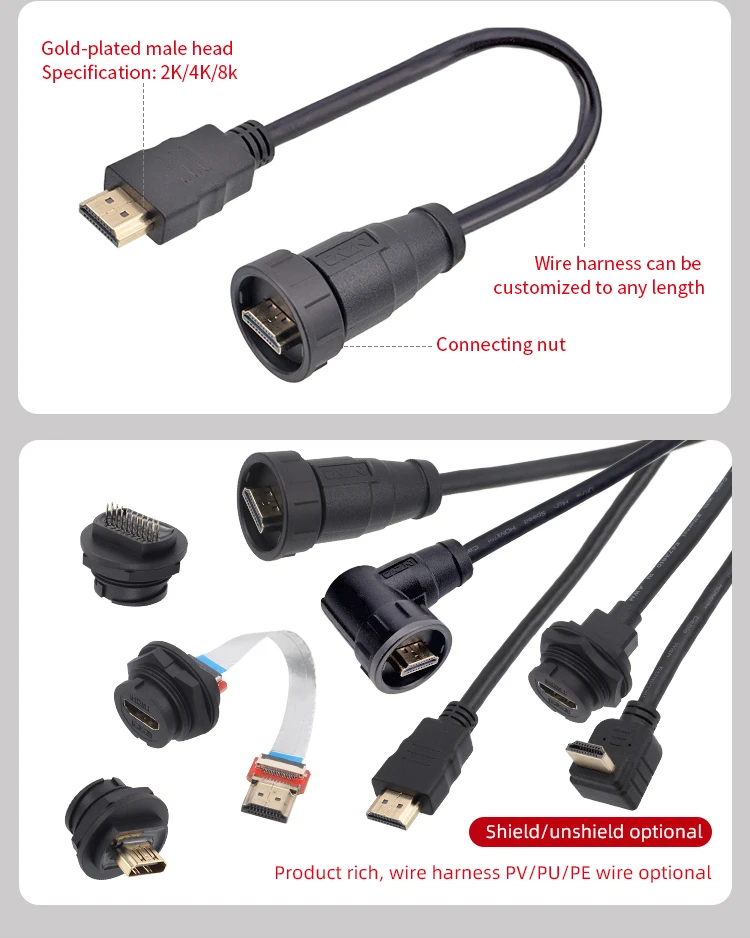 Estándar del producto: TYPE-A, conexión de bloqueo roscada, estructura rica, hasta 4K HD