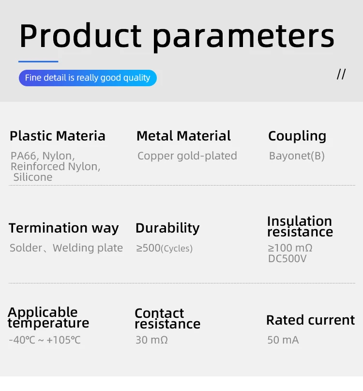 Título: Interfaz multimedia Conector impermeable Tipo de bayoneta Cabeza recta con enchufe de cable.