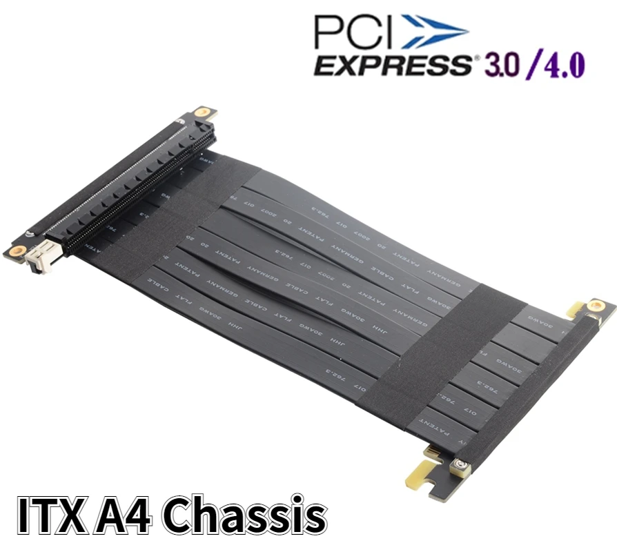 Conector inverso negro GPU PCI E x16 3,0 4,0 Cable de extensión de tarjeta gráfica Elevador estable de velocidad completa Flexible para chasis ITX A4