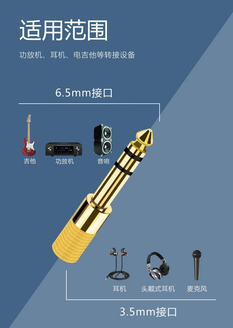 Nombre del producto: 6,5 macho a 3,5 hembra Adaptador de audio