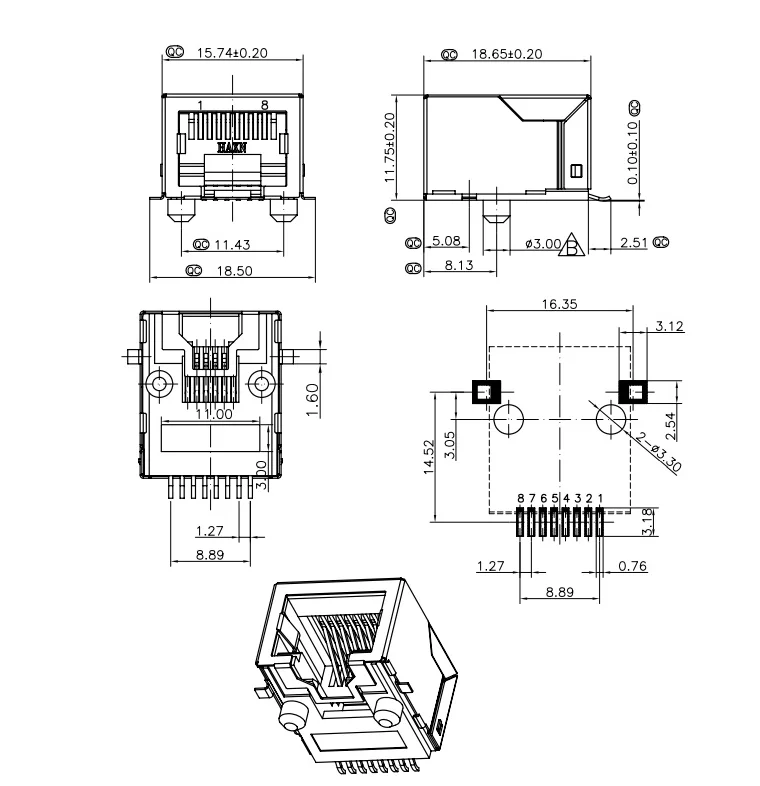 5 uds SMT RJ45 8P8C conector Jack montaje en PCB enchufe de red Internet Modular