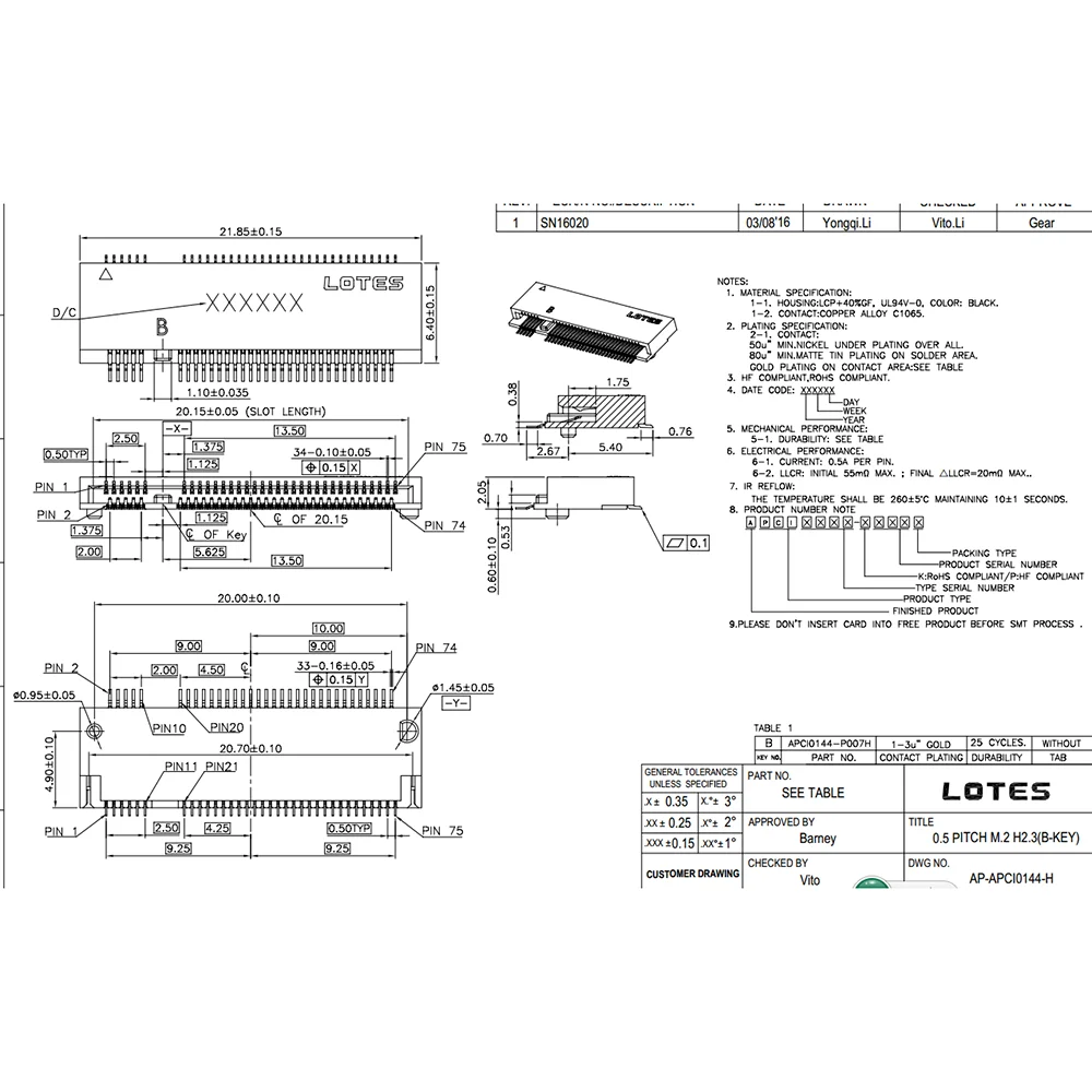 Comprar Conector M.2 de 5 piezas-100 piezas, 67P, B, NGFF, SSD, toma H = 2,3, 3,2, 4,2, 4,8, 6,7, 8,5, ranura B, 3,2 H, 2,3 H, 4,2 H, 4,8 H, 6,7 H, 8,5 H